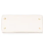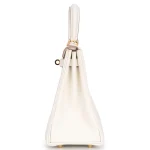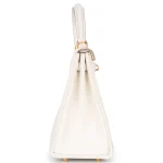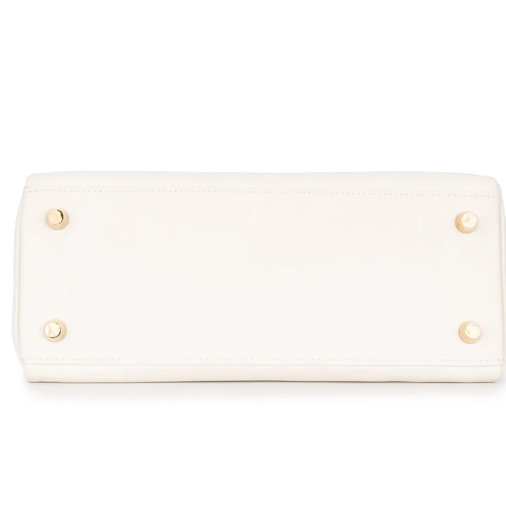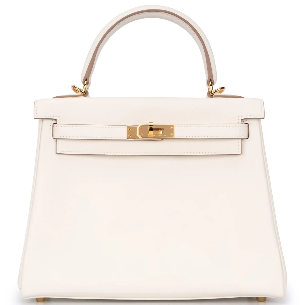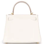 This Hermès Kelly 25 uses Swift Mushroom (soft taupe) leather for understated charm. Gold hardware elevates the slouchy retourne shape. The 25cm size holds phones, cosmetics, and essentials. Swift leather stays smooth and scratch resistant. Style with earth tones or metallics for quiet luxury. Ideal for casual offices or weekend outings. Subtle refinement.