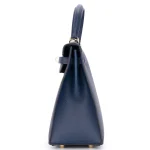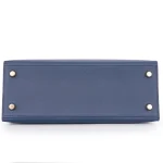 This Hermès inspired Kelly 25 Sellier uses Epsom Bleu Navy (deep blue) leather for nautical polish. Gold hardware accents the crisp Sellier stitching and clasp. The 25cm size holds tablets, planners, and essentials. Epsom leather resists wear and stays structured. Style with white linens or gold jewelry for maritime contrast. Perfect for offices, yacht parties, or timeless elegance. Classic allure.