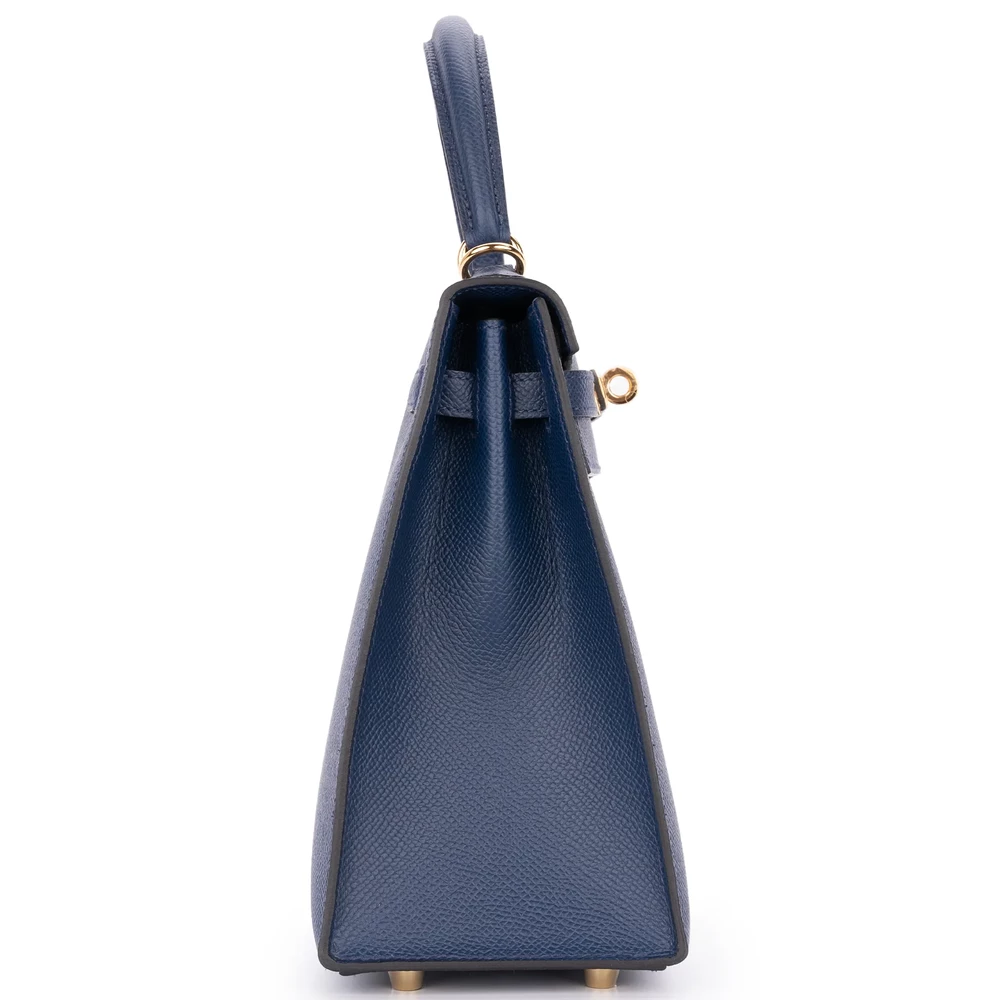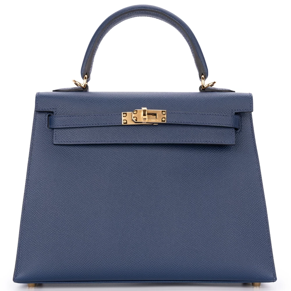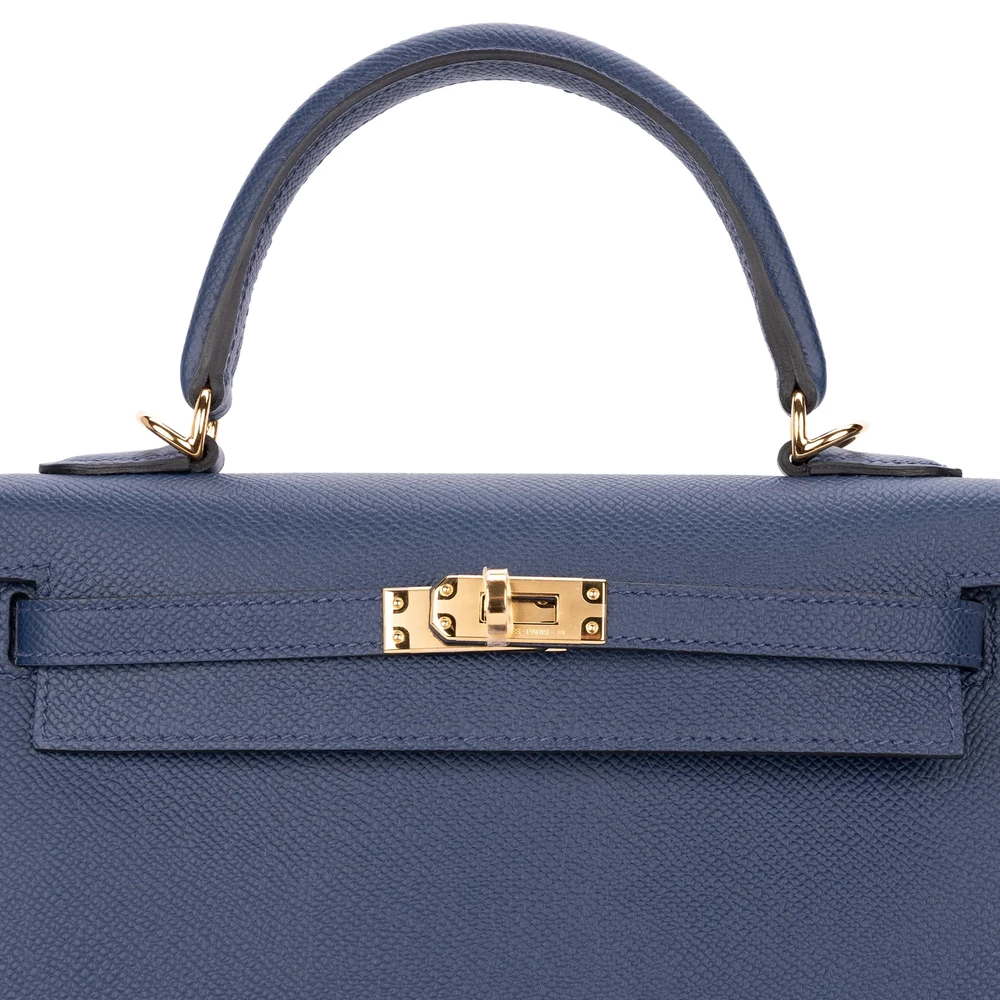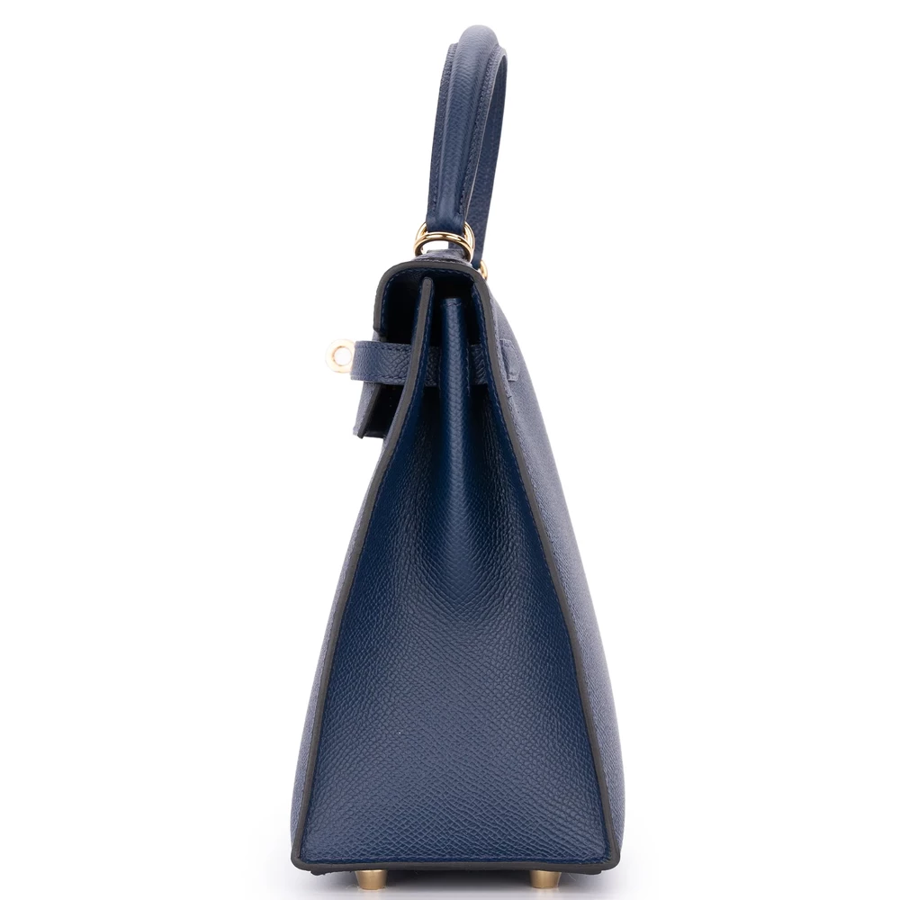 Hermès Kelly 25 Sellier Epsom Bleu Navy Gold HW – High-End Inspired