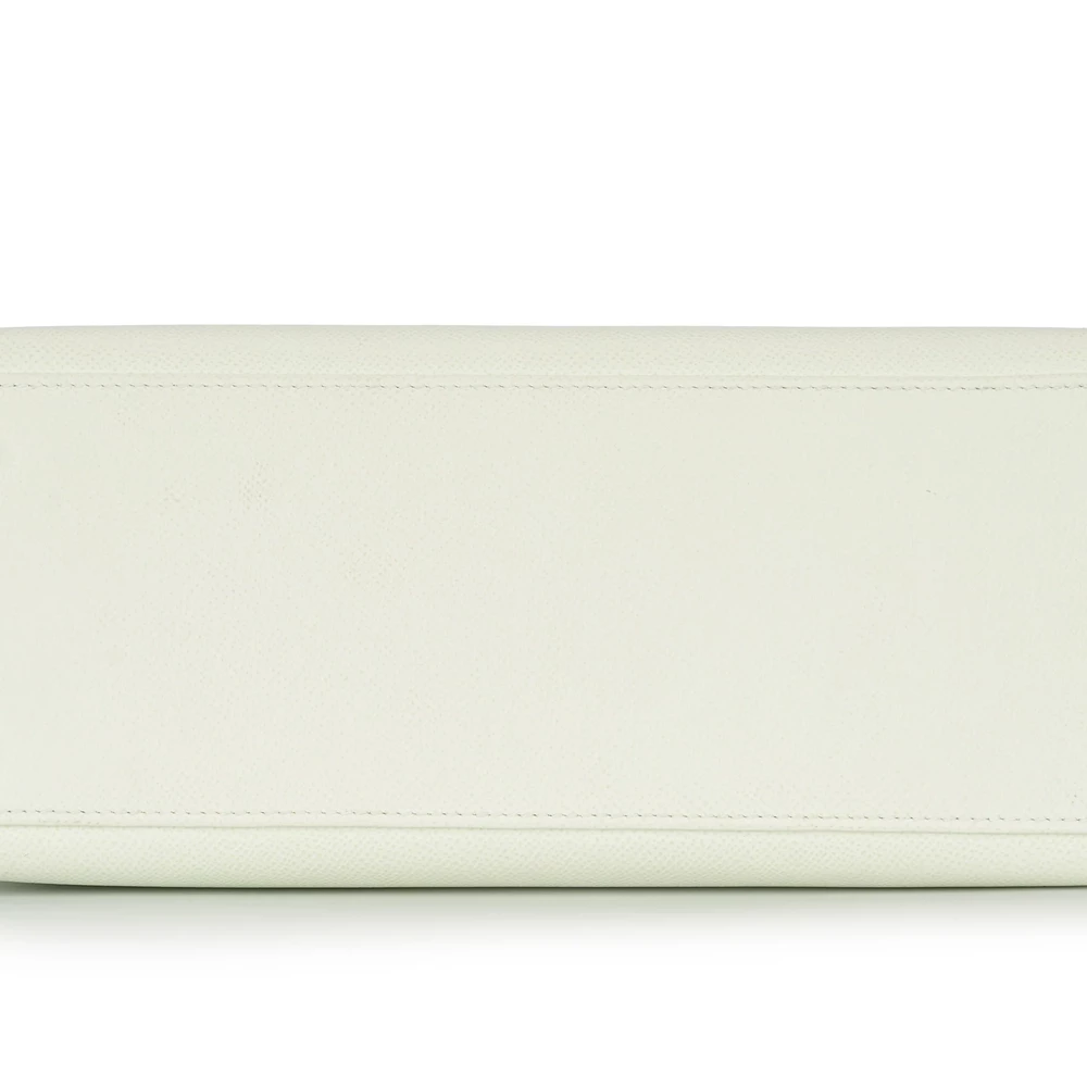 This Hermès Kelly 28 Sellier uses Epsom Veau leather for smooth, neutral versatility. Palladium hardware accents the structured Sellier lines and angular clasp. The 28cm size fits files, tablets, and daily essentials. Epsom leather resists wear and stays polished. Style with tailored suits or casual separates for timeless contrast. Built for offices, meetings, or polished errands. Effortless authority.