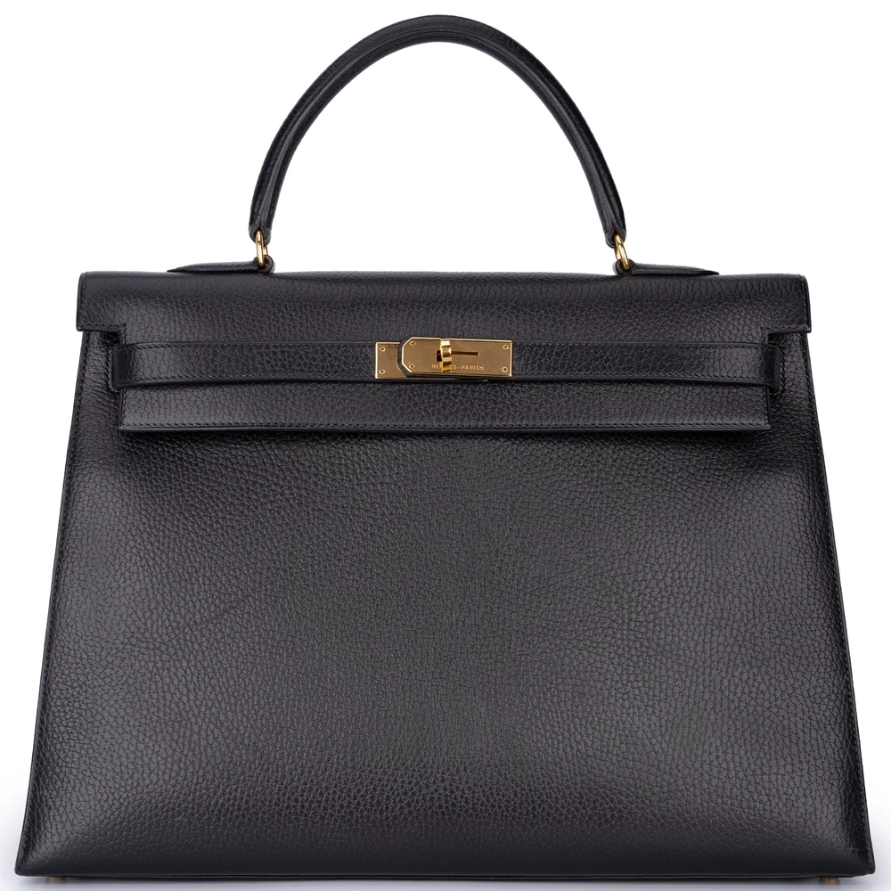 Hermès Kelly 35 Sellier Clemence Black Gold HW – Mirror Quality Replicas