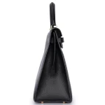This Hermès inspired Kelly 35 Sellier features Clemence Black leather for soft, slouchy polish. Gold hardware highlights the structured Sellier lines and clasp. The 35cm size fits files, tablets, or travel kits. Clemence leather ages gracefully and resists scratches. Style with tailored coats or casual layers for versatile contrast. Perfect for work, travel, or everyday luxury. Quiet authority.