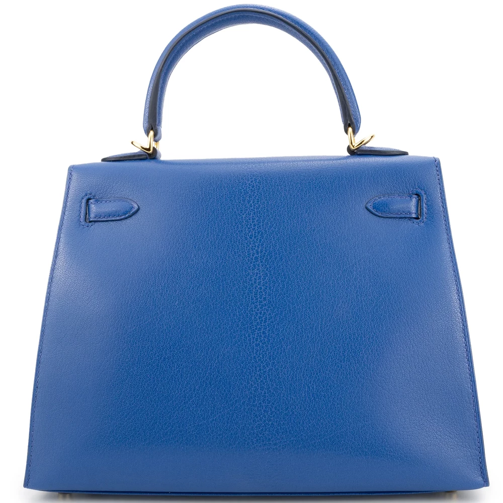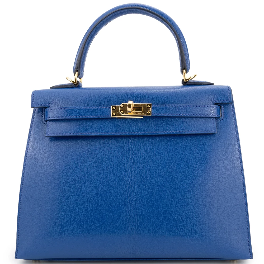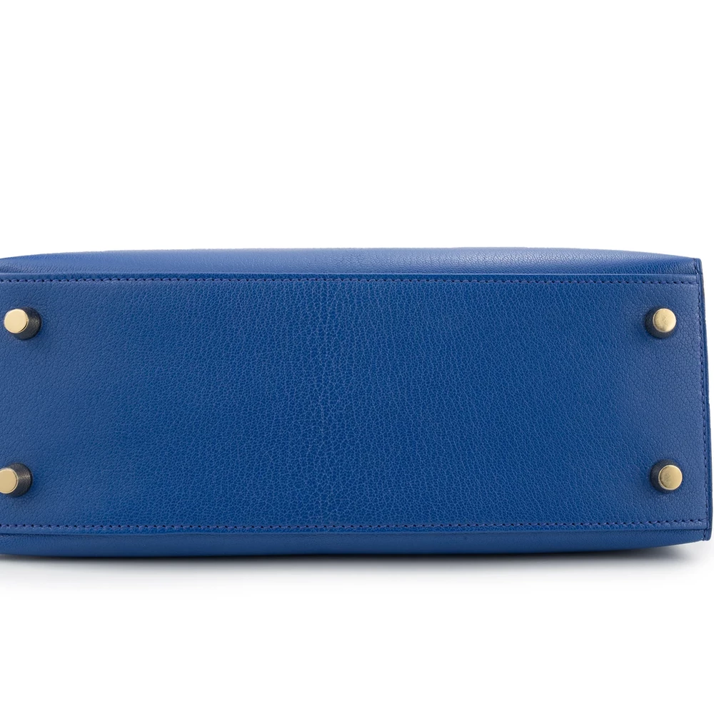 Hermès Kelly 25 Sellier Chamkila Chevre Bleu Royal Gold HW – 1:1 Replica