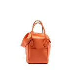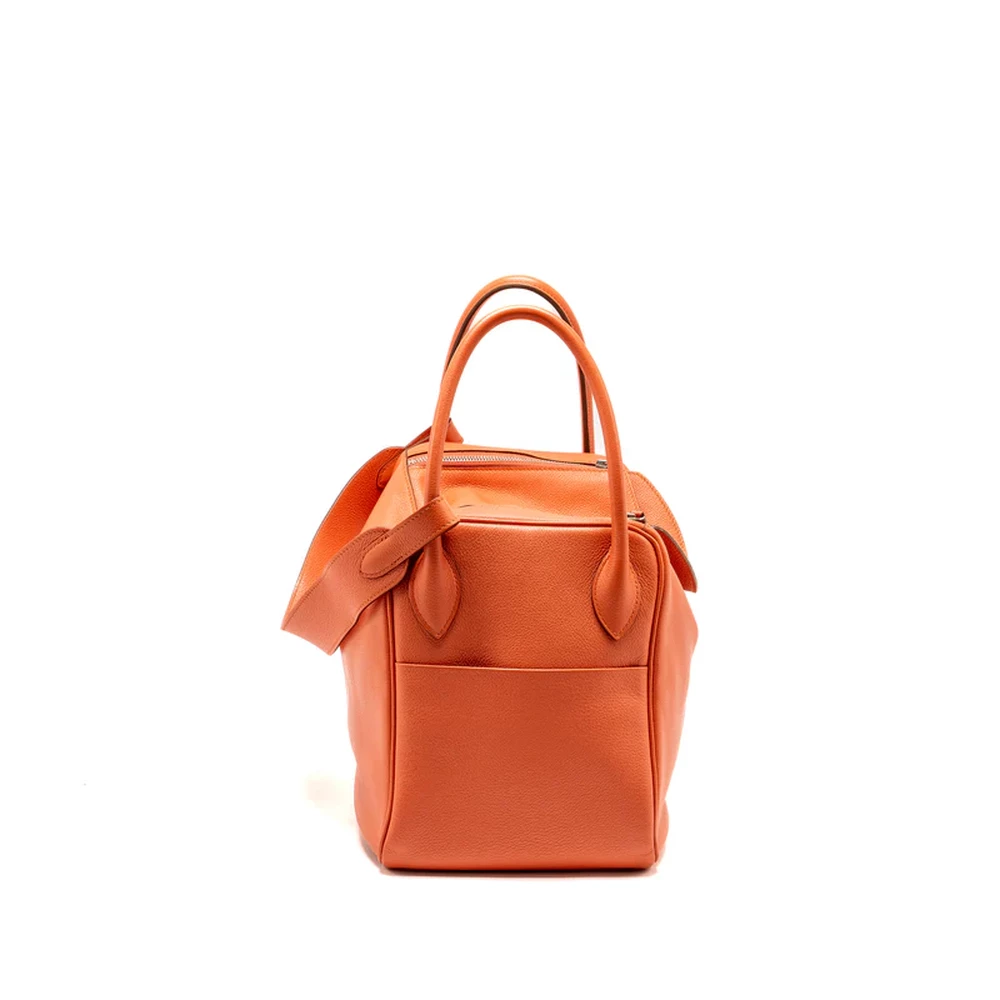 This Hermès Lindy 34 in Evercolor leather in Crevette with Silver Hardware stamp Square R offers a vibrant and chic design. The bright Crevette color, paired with luxurious Evercolor leather, creates a bold and elegant aesthetic. Silver hardware adds a modern touch to this spacious and versatile bag.