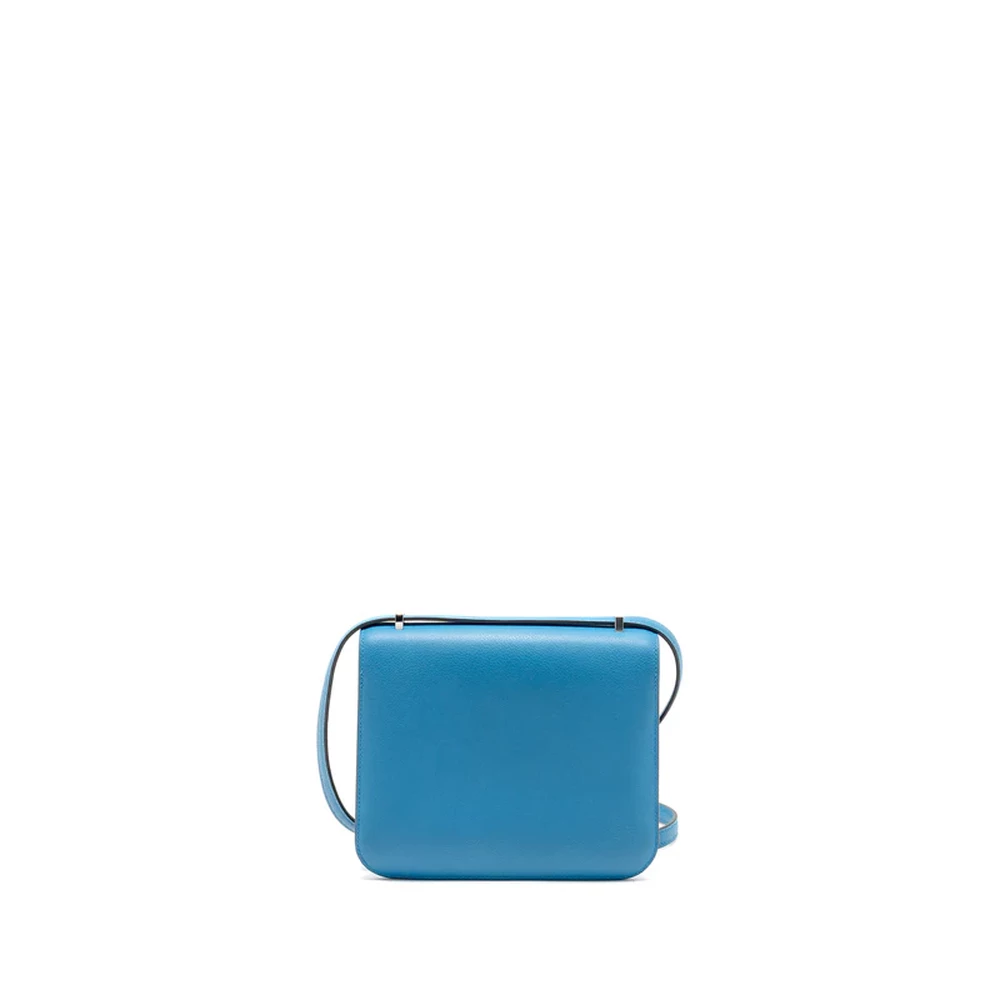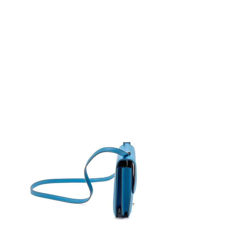 This Hermès Mini Constance in Evercolor leather and Bleu Zanzibar with silver hardware offers a chic and sophisticated design. The rich blue leather paired with the silver hardware creates an elegant and timeless look. Its compact size and structured silhouette make it perfect for both formal and casual events, offering versatility and style.