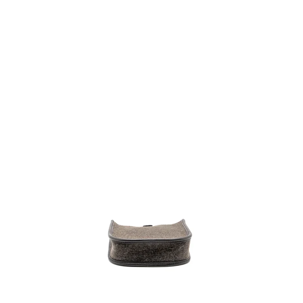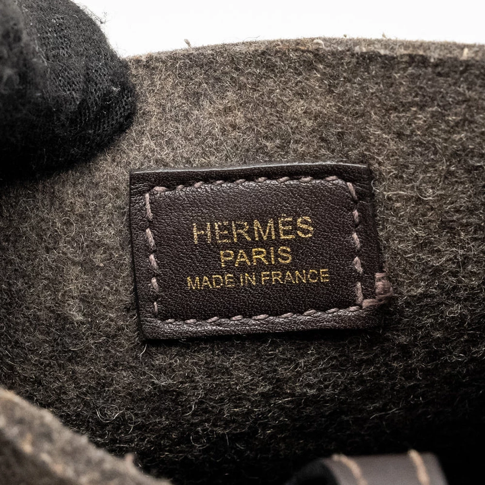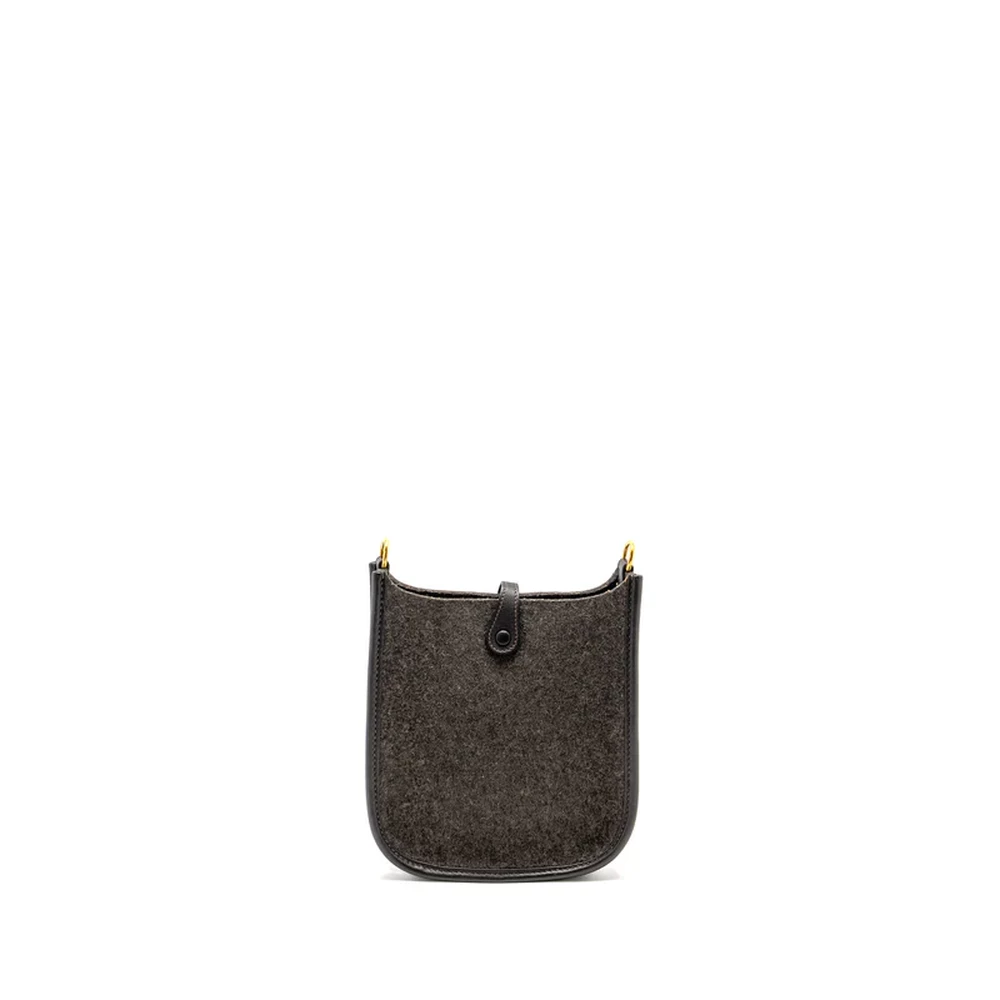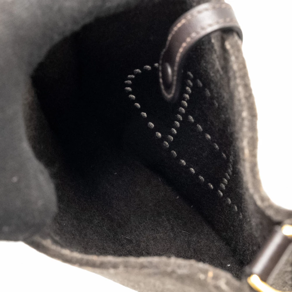 This Hermès Mini Evelyne in Feutre and Swift leather with Sangle Wool in Ébène with Gold Hardware stamp Y offers a unique and stylish design. The soft Feutre and Swift leather, combined with the wool strap, creates a modern and functional look with a chic, rustic feel.