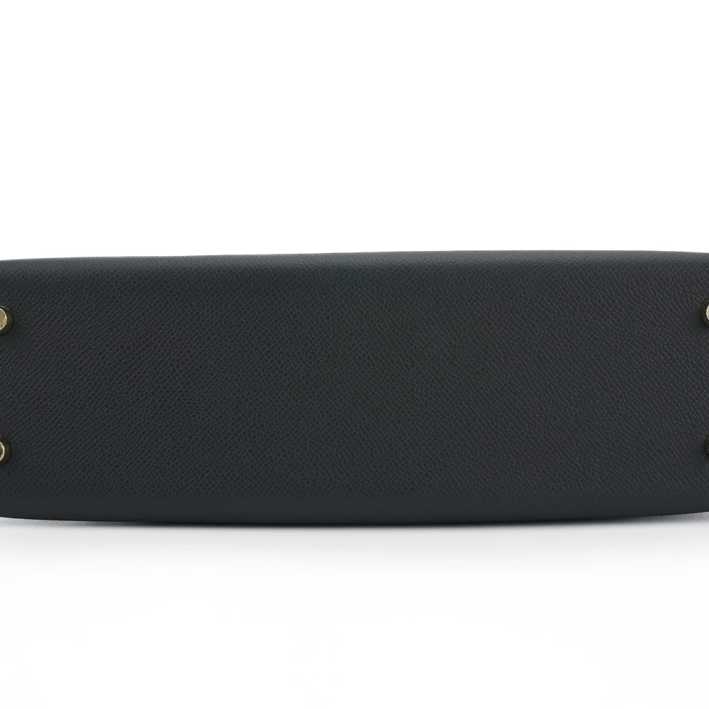 This Hermès Mini Kelly Touch glows in Vert Rosseau (moss green) leather with Permabrass hardware. The mini size holds small essentials like keys or cards. Textured leather resists scratches and adds earthy charm. Pair with neutrals or autumn tones for organic elegance. Perfect for nature inspired events or casual outings. Fresh and refined.