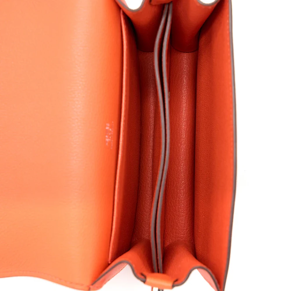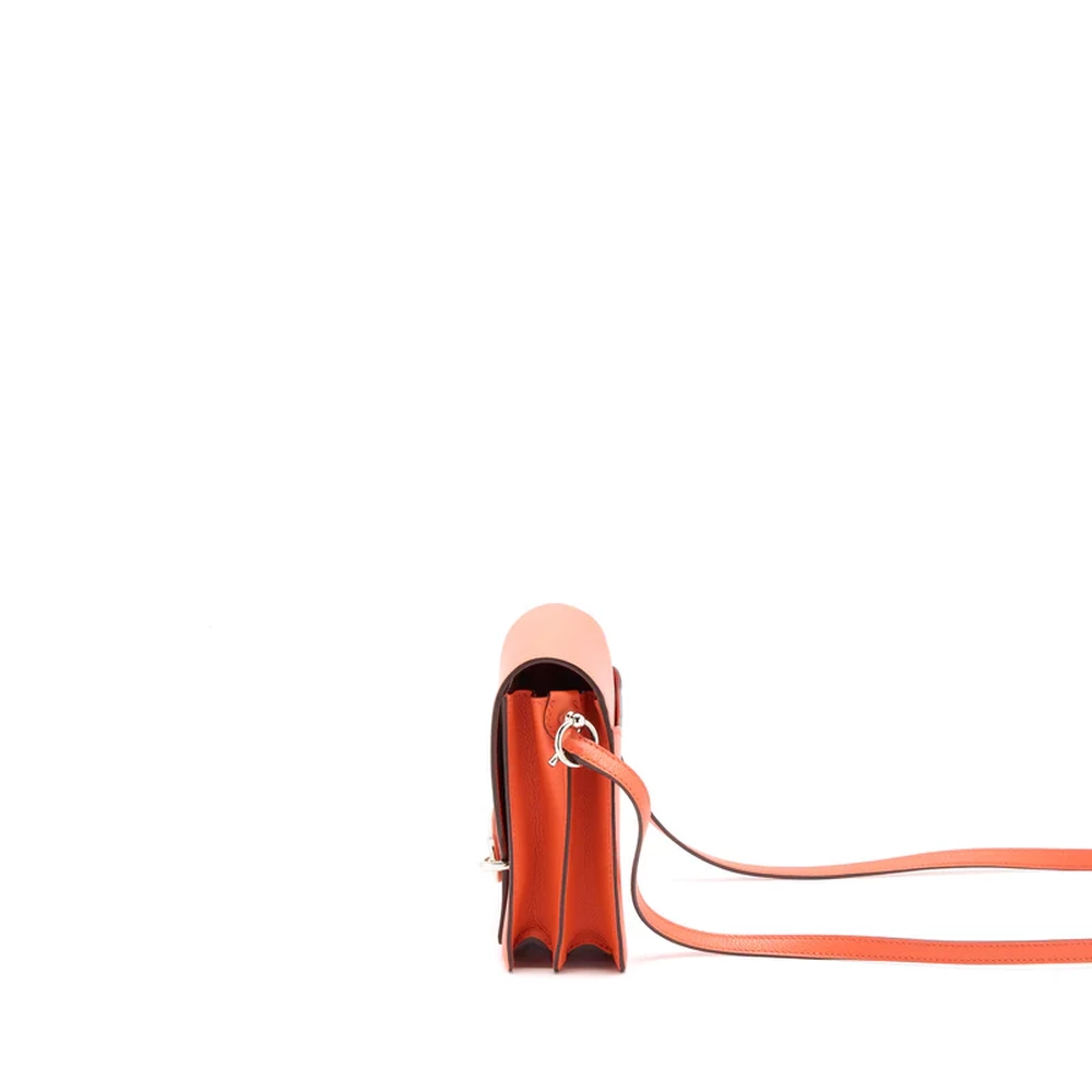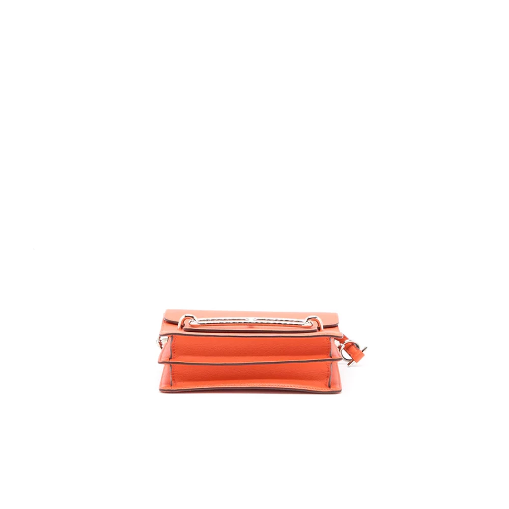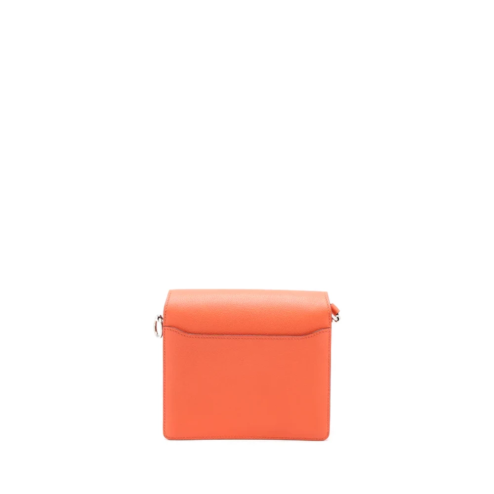 This Hermès Mini Roulis in Evercolor leather and Orange with silver hardware brings a vibrant burst of color to any outfit. The cheerful orange leather combined with sleek silver hardware creates a fun, bold aesthetic, while the compact design ensures it’s both practical and stylish for daily use.