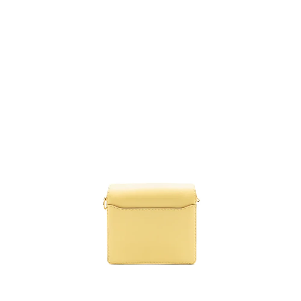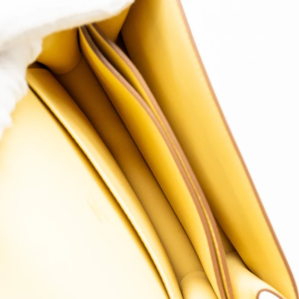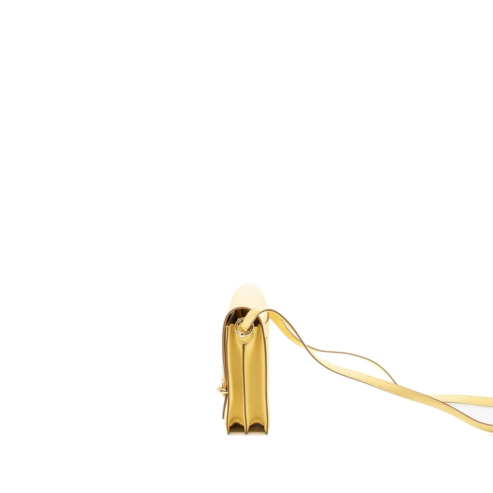 This Hermès Mini Roulis in Swift leather and Jaune Poussin with gold hardware offers a cheerful and vibrant design. The soft yellow leather paired with the warm gold hardware creates a sunny, inviting look. The compact size and smooth design make this bag a perfect accessory for spring and summer outings.