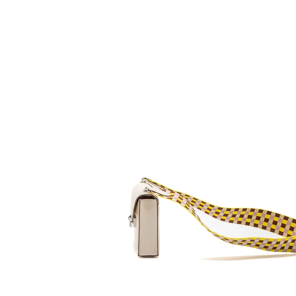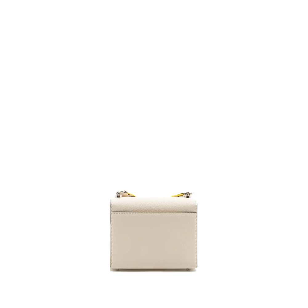 This Hermès Mini Verrou in Chevre Mysore leather and Nata with multicolor strap and silver hardware offers a striking blend of neutral tones and bold accents. The soft Nata leather combined with the vibrant multicolor strap adds an element of fun to this compact, chic design.