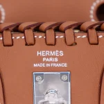 This Hermès like Birkin 25 features striped gold and white Swift leather. The silver palladium hardware keeps it fresh and summery. The 25cm size is perfect for picnics or brunch dates. The stripes add a playful, retro touch. Pair it with linen outfits or casual jeans. Lightweight and easy to carry. A bag that’s as fun as a day outdoors.