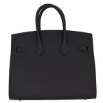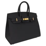 This Hermès Replica Birkin 25 features Black Epsom leather in sellier style. Gold hardware adds luxury contrast. The 25cm size keeps perfect structure. Epsom leather stays pristine. Elevates professional looks. Your perfect office companion. Sleek luxury for the workplace.