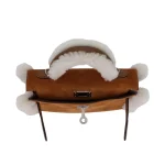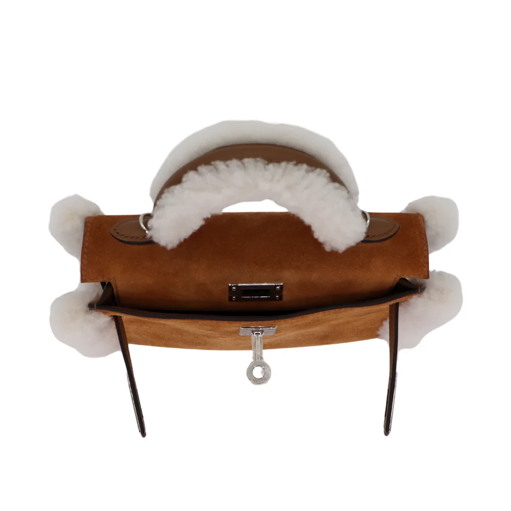 This Hermès inspired Kelly Mini Teddy combines plush shearling and Chamois leather for cozy texture. Palladium hardware accents the playful Alezan trim and compact shape. The mini size fits keys, cards, and lip balms. Shearling is soft, while Chamois leather resists stains. Pair with winter knits or denim for rustic charm. Made for ski trips, holidays, or casual winter days. Warmth reimagined.