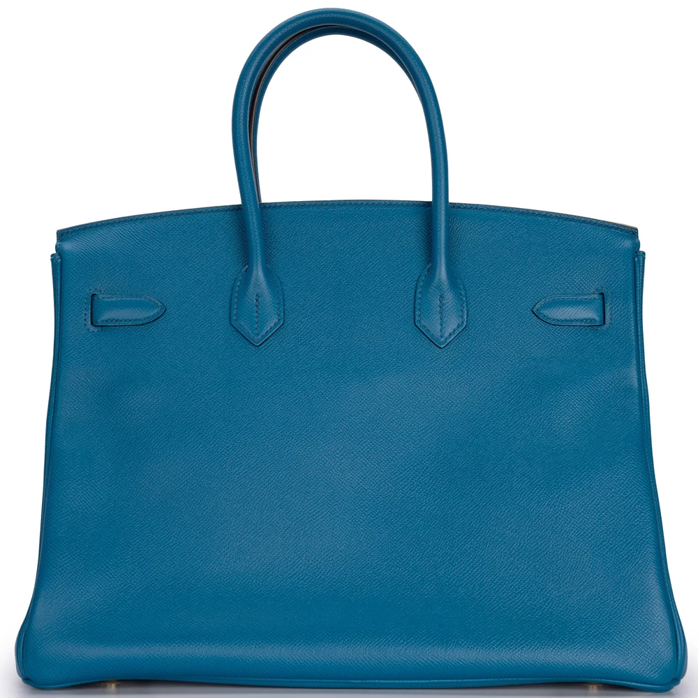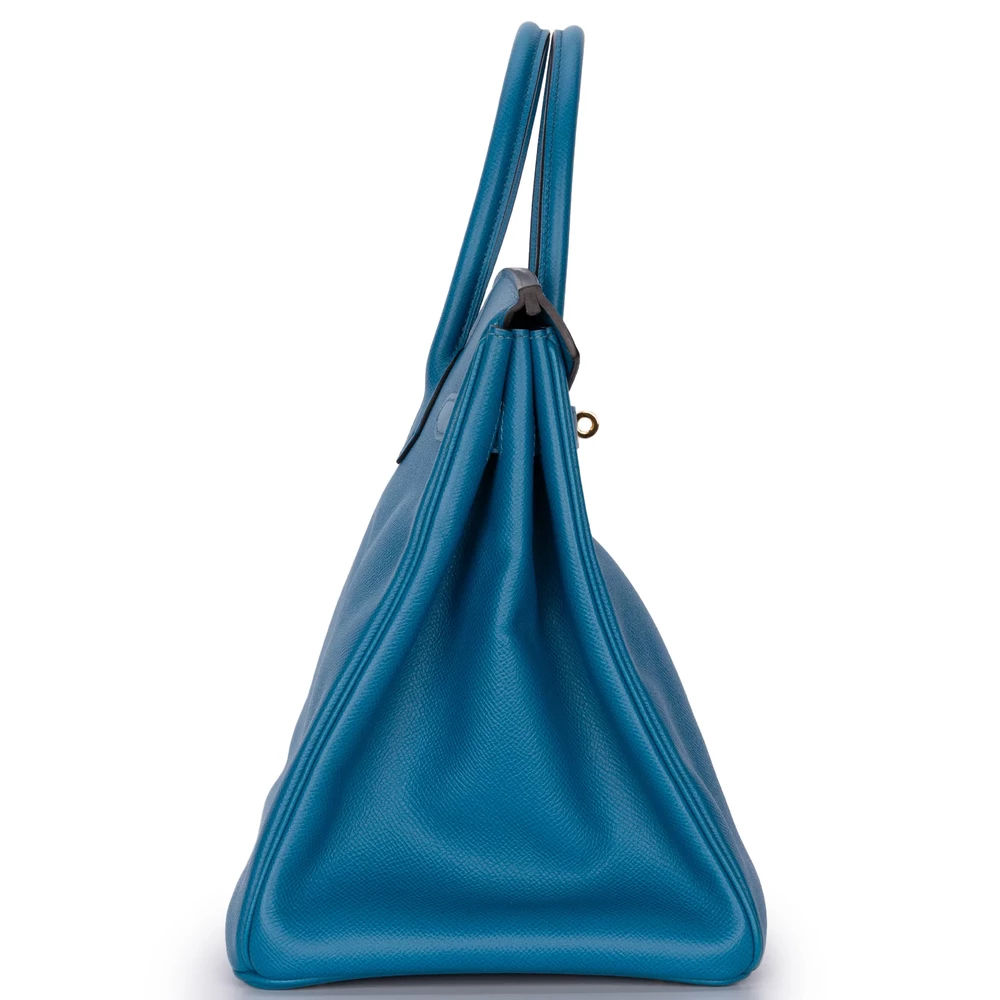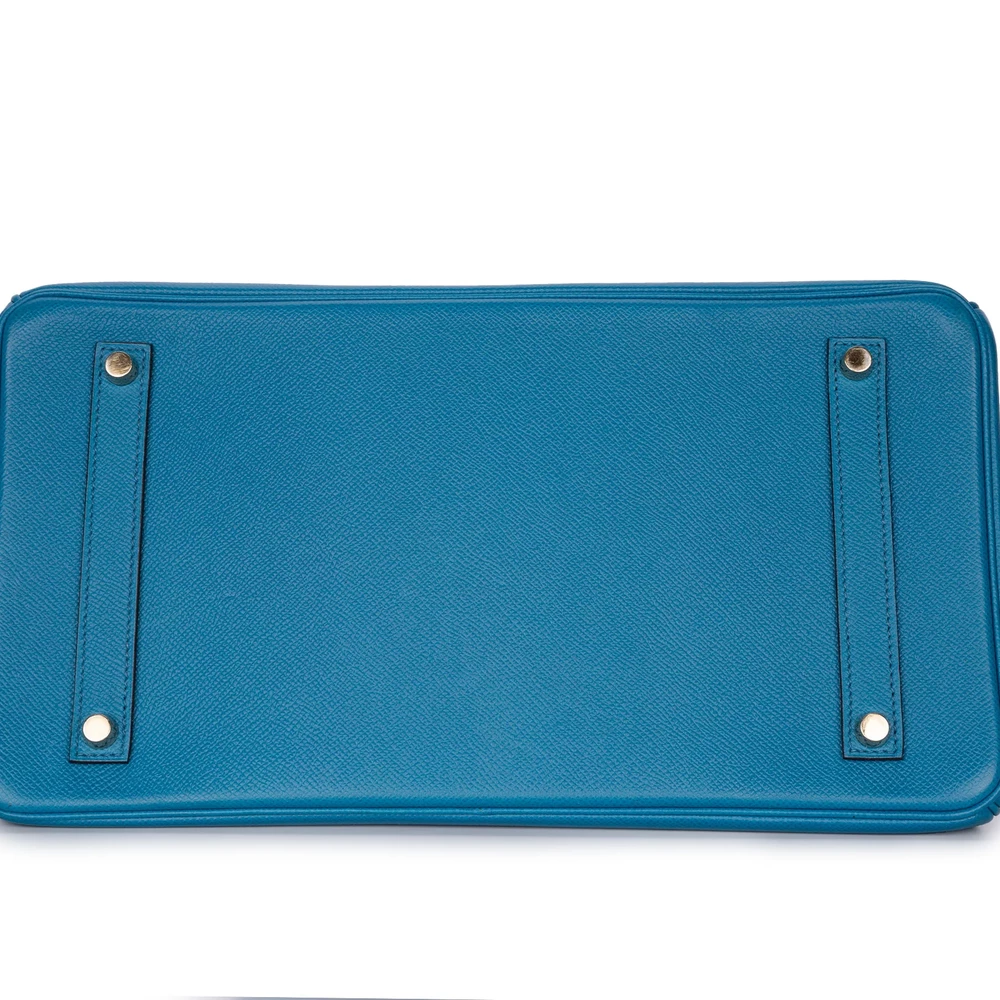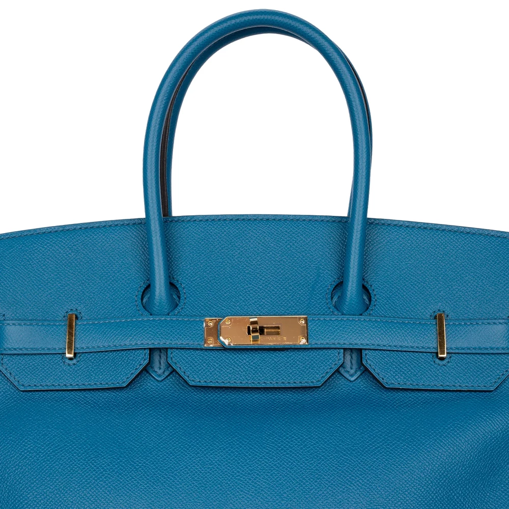 Hermès Birkin 35 Retourne Epsom Blue Izmir Gold HW – Artisan-Grade Dupes