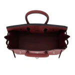 This Hermès inspired Birkin 25 in Rouge H uses rich red Togo leather that’s scratch resistant. The silver palladium hardware keeps the look bold but balanced. The 25cm size is compact enough for nights out but holds your phone and lipstick. The deep red color adds instant glamour to any outfit. You’ll love how it stands out against black, white, or neutral tones. It’s a fiery accessory that screams confidence. Get the luxury look for a fraction of the price.