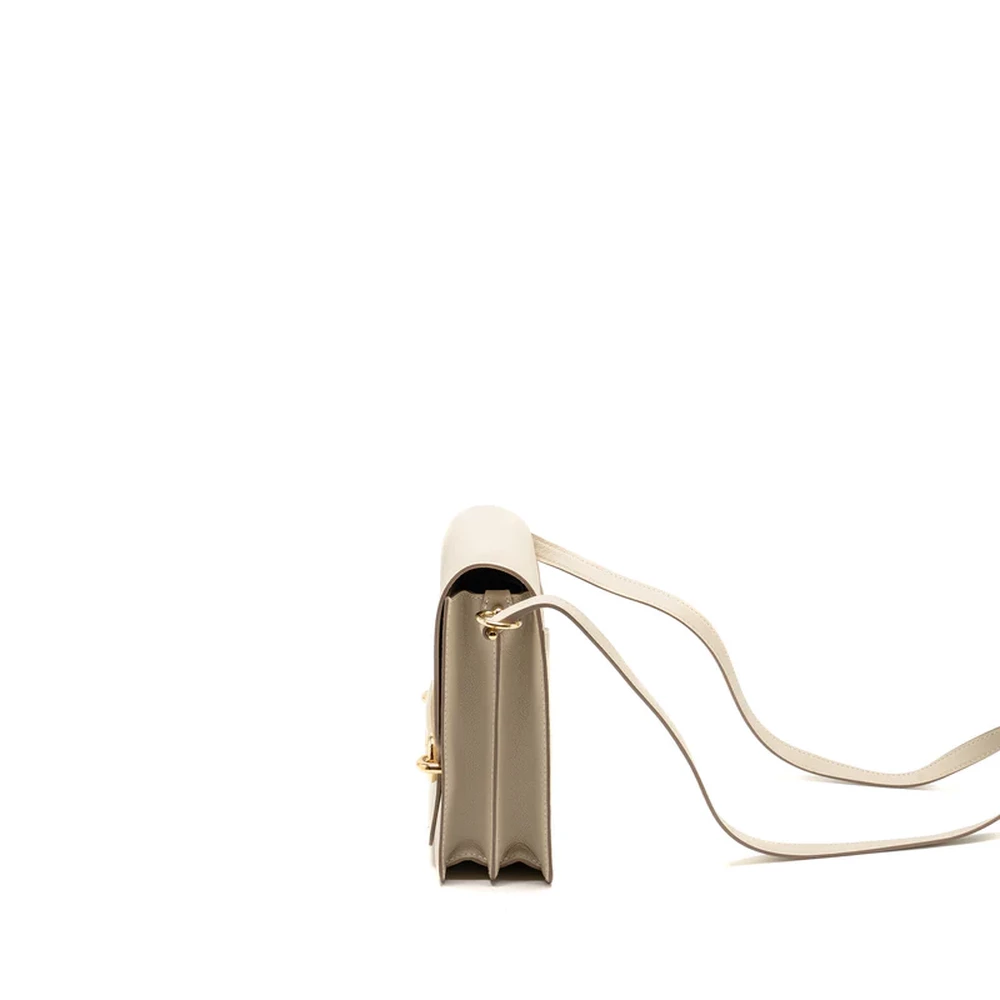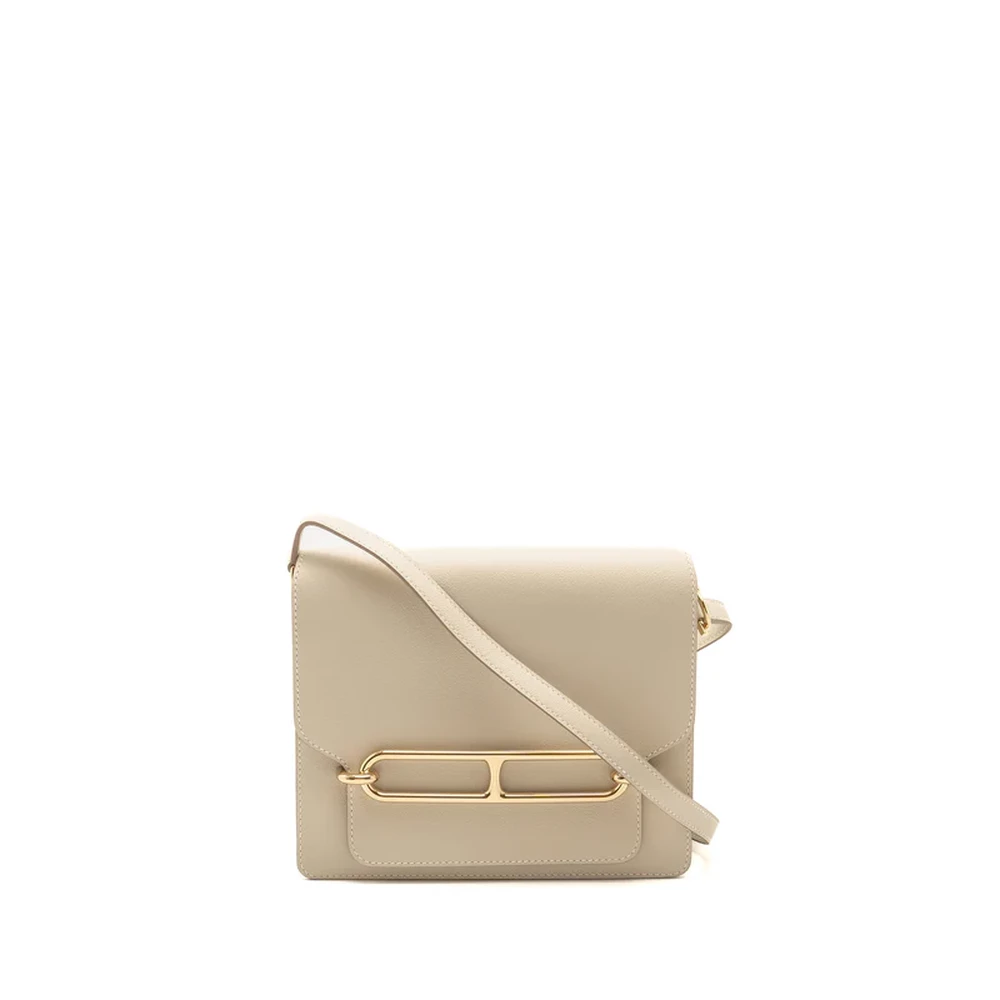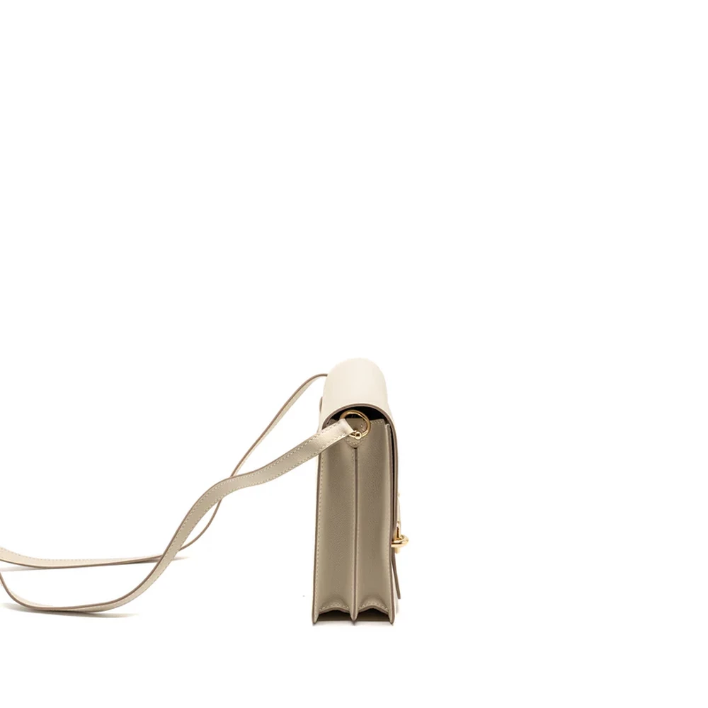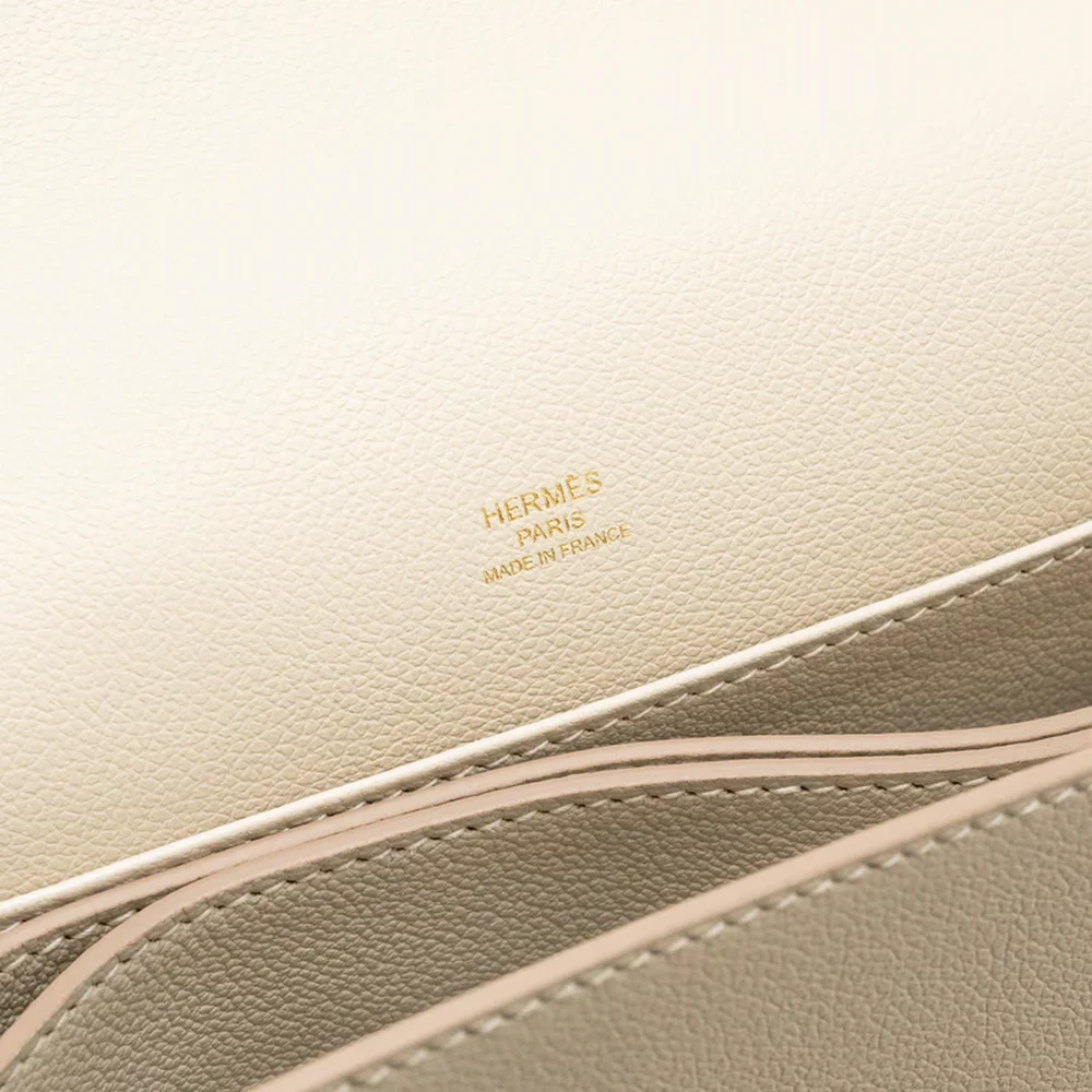 This Hermès Roulis 23 in Evercolor leather and Beton with gold hardware offers a chic, minimalist design. The soft grey leather combined with the elegant gold hardware creates a refined, modern look, while the structured shape adds both form and function to this compact bag.
