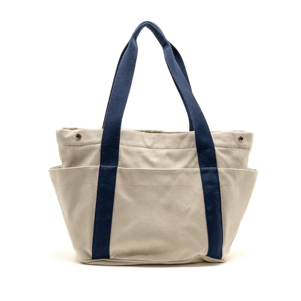 This Hermès Sac à Langer Cabriole Nappy Bag in Cotton in Gris Perle with Silver Hardware offers a stylish and functional design. The soft Gris Perle color, combined with durable cotton, creates a chic and practical nappy bag, perfect for parents on the go.