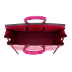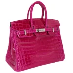 This Hermès style Birkin 25 in Rose Scheherazade shines with glossy pink crocodile leather. The silver palladium hardware keeps the look glamorous but not overpowering. The 25cm size is perfect for nights out or special occasions. The exotic texture makes it feel like a true luxury piece. You can fit your phone, cards, and a tiny perfume bottle. Pair it with a little black dress for unforgettable vibes. It’s a showstopper that won’t break the bank.