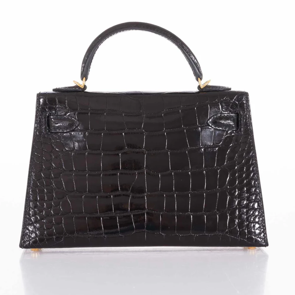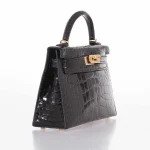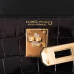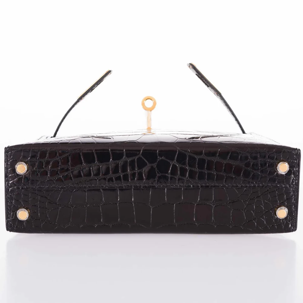 Premium Hermès Replica – Kelly II Sellier Mini Black Shiny Crocodile Gold HW