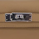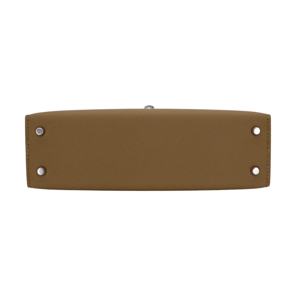 This Hermès Dupe Kelly Mini features Poussiere Epsom in soft grey. Palladium hardware keeps it modern. The mini size fits essentials neatly. Epsom leather resists stains. Perfect for minimalist outfits. Your perfect understated luxury companion. Quiet elegance for refined tastes.