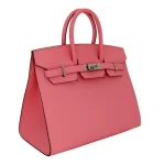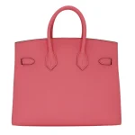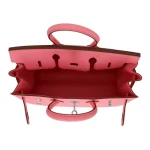 This Hermès inspired Birkin 25 in Rose Confetti has cheerful pink Epsom leather. The silver palladium hardware keeps it looking fresh and modern. The 25cm size is ideal for carrying just what you need daily. The structured shape stays perfect no matter how much you use it. You’ll love how the bright color makes any outfit more fun. The quality stitching and materials make it last for years. It’s a happy bag that brings a smile whenever you use it.