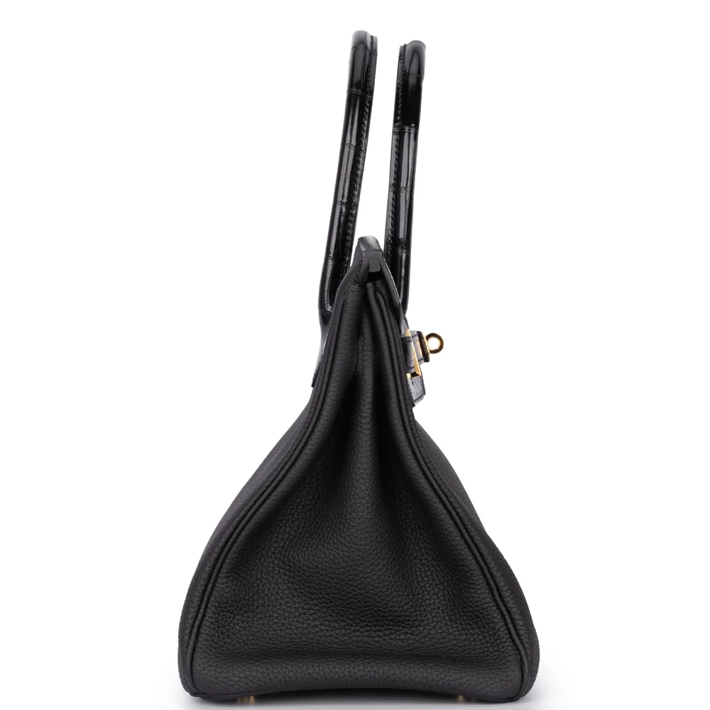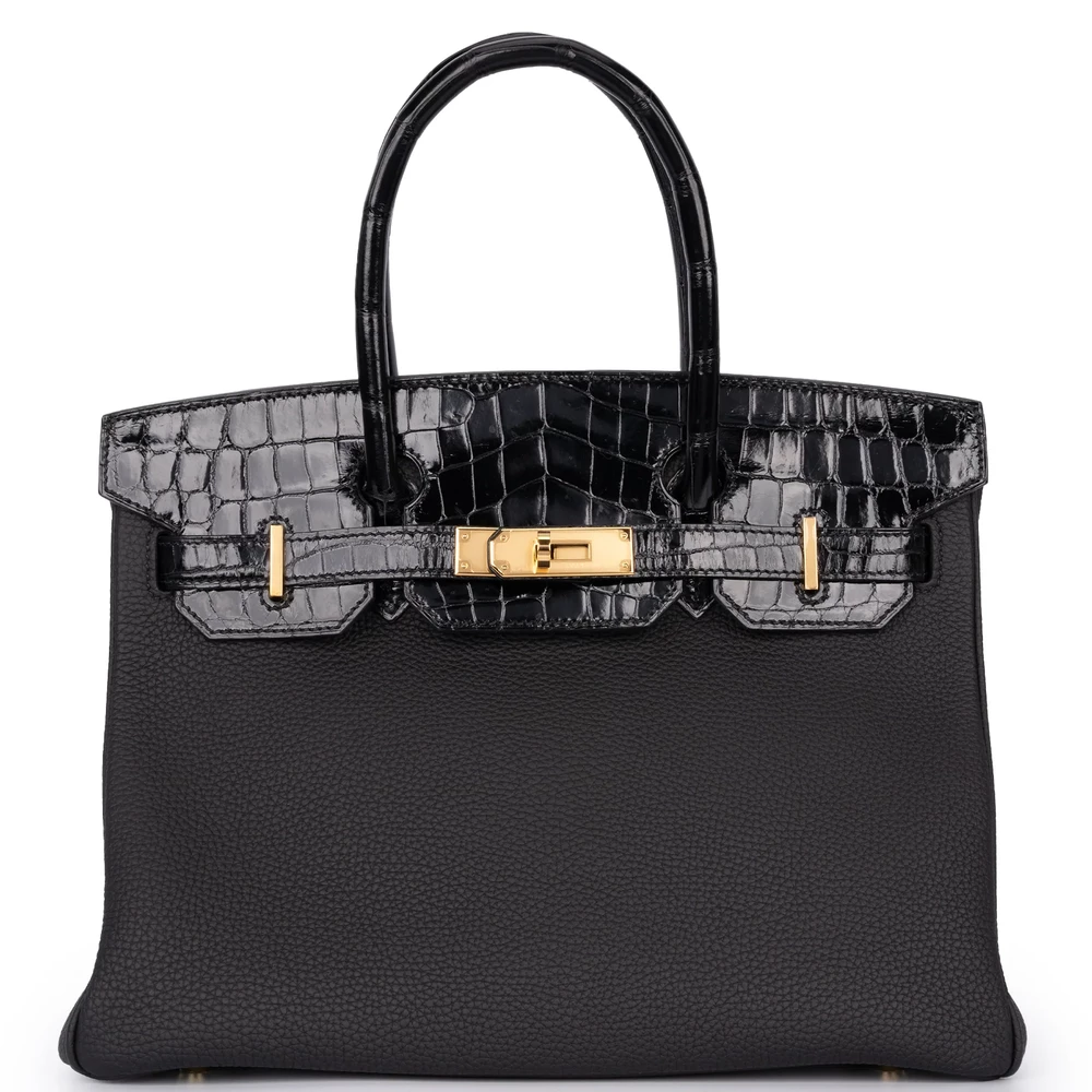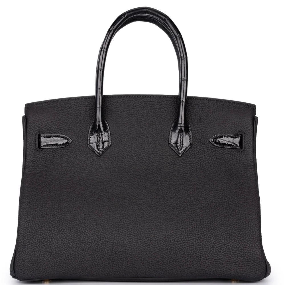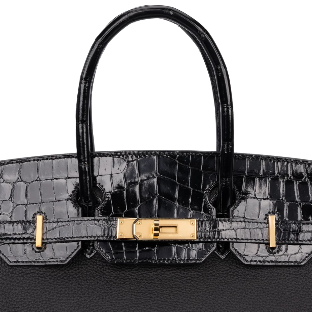 Hermès Birkin 30 Touch Togo/Croc Nilo Lisse Noir Rough Gold HW – Artisan-Grade Dupes