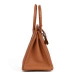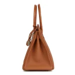 This Hermès inspired Birkin 30 Touch pairs Gold Togo leather with matte alligator for sun kissed texture. Palladium hardware adds cool contrast to the slouchy design. The 30cm size holds bulkier items like blankets or files. Togo and alligator resist scratches and stay supple. Pair with neutrals or jewel tones for radiant polish. Built for vacations, offices, or casual luxury. Gilded versatility.