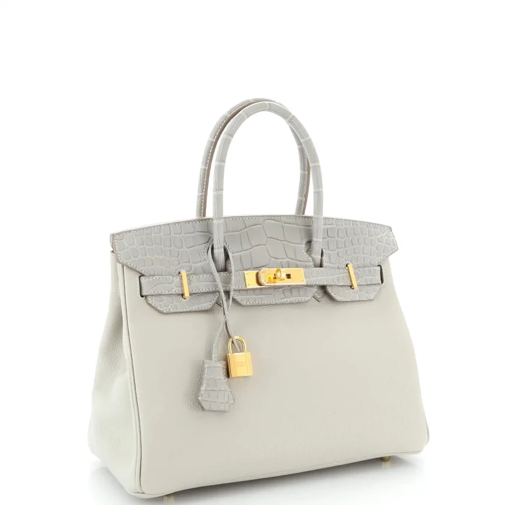 Hermès Birkin 30 Touch Grey Togo/Matte Alligator Gold HW – Mirror Quality Replicas