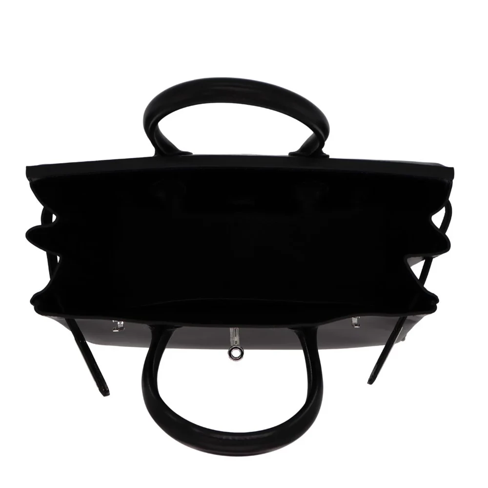 This Hermès Inspired Birkin 30 features sleek black box calf leather with mirror shine. Palladium hardware complements the formal aesthetic. The 30cm size fits office essentials perfectly. Smooth leather develops rich patina over time. Elevates suits and professional attire. The boardroom bag that means business. Understated power in every detail.