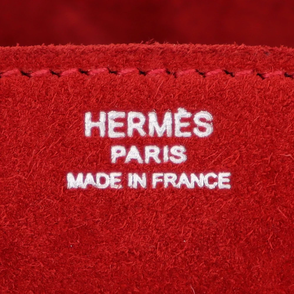 This Hermès Inspired Birkin 25 features vibrant Rouge Vif suede in plush texture. Palladium hardware adds cool contrast to the red. The 25cm size is perfect for evenings out. Soft suede feels luxurious against your skin. Pops beautifully against black outfits. Your perfect date night companion. Passionate color for bold personalities.
