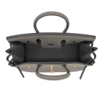 This Hermès Inspired Birkin 25 features Gris Meyer Togo leather in cool grey. Gold hardware adds warmth to the neutral tone. The 25cm size keeps essentials organized neatly. Togo leather is durable yet soft to touch. Works with any color in your closet. Your perfect minimalist luxury companion.