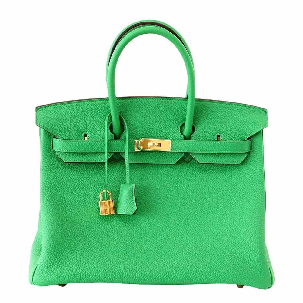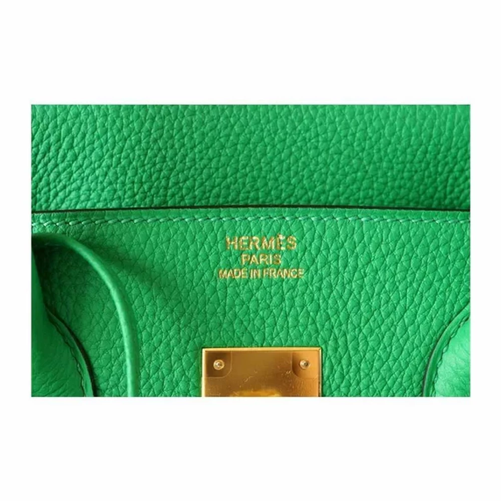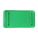 This Hermès inspired Birkin 35 shines in vivid Bambou Epsom leather. Gold hardware outlines the structured shape and angular sangles. The 35cm spacious interior organizes tech gadgets and cosmetics. Epsom leather repels stains and stays rigid. Contrast with monochrome outfits for bold pop. Designed for fashion weeks, vacations, or statement errands. A burst of modern vitality.