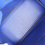 This Hermès inspired Birkin 35 glows in eye catching Bleu Electrique Togo leather. Gold hardware amplifies the bag’s daring curves and luxe appeal. The 35cm size accommodates bulkier items like scarves or tablets. Togo leather stays lightweight and scratch resistant. Pair with black leather jackets or neutral tones for modern edge. Designed for fashion events, vacations, or bold streetwear. A beacon of contemporary glamour.