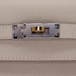 This Hermès Inspired Kelly 25 features Craie Epsom in pristine white. Electrum hardware offers unique metallic contrast. The sellier style keeps perfect structure. Epsom leather resists stains. Perfect for special occasions. Your perfect wedding guest companion. Pure luxury for memorable events.