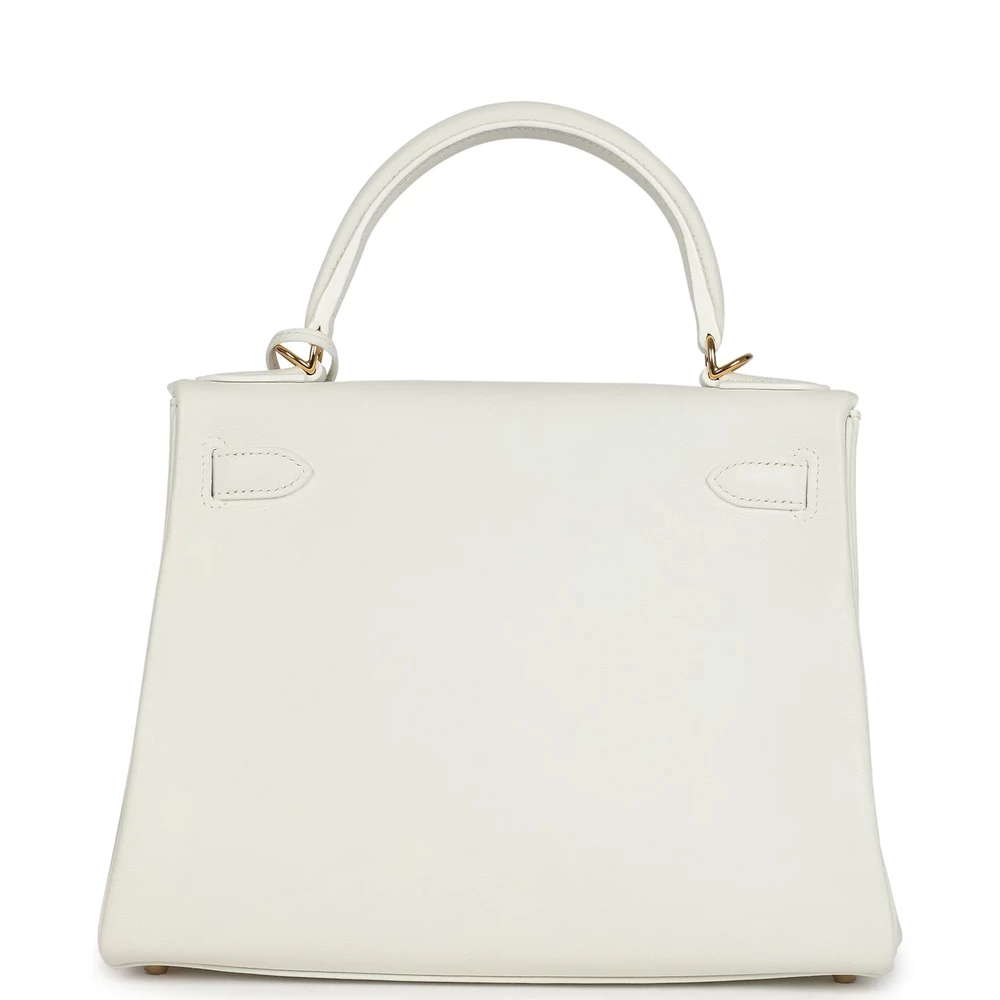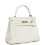 High-End Hermès Inspired – Kelly 28 Retourne White Evercolor Gold HW