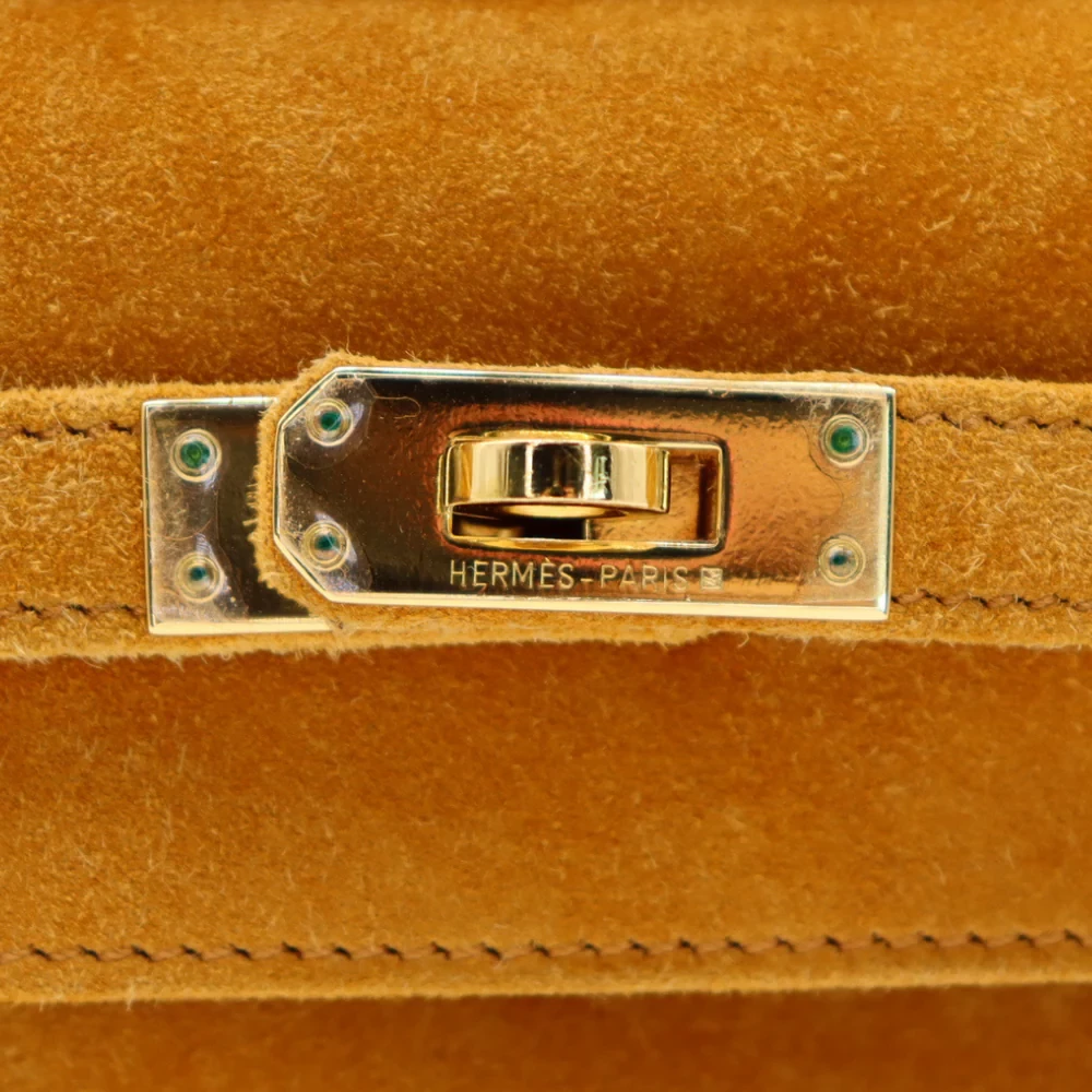 High-End Hermès Inspired – Kelly Pochette Doblis Jaune Suede Gold HW