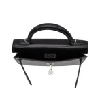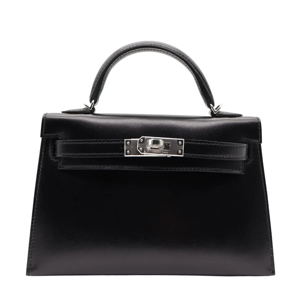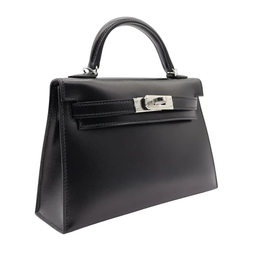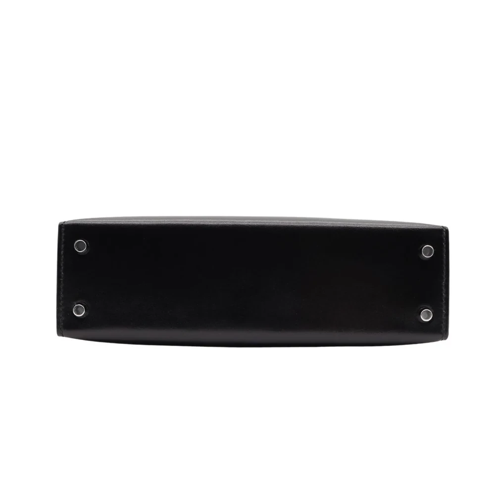 This Hermès inspired Kelly Mini uses Black Box Calf. Palladium hardware keeps it sleek. The 20cm sellier style stays structured. Mirror like leather elevates outfits. Perfect for polished evenings. Timeless elegance perfected.