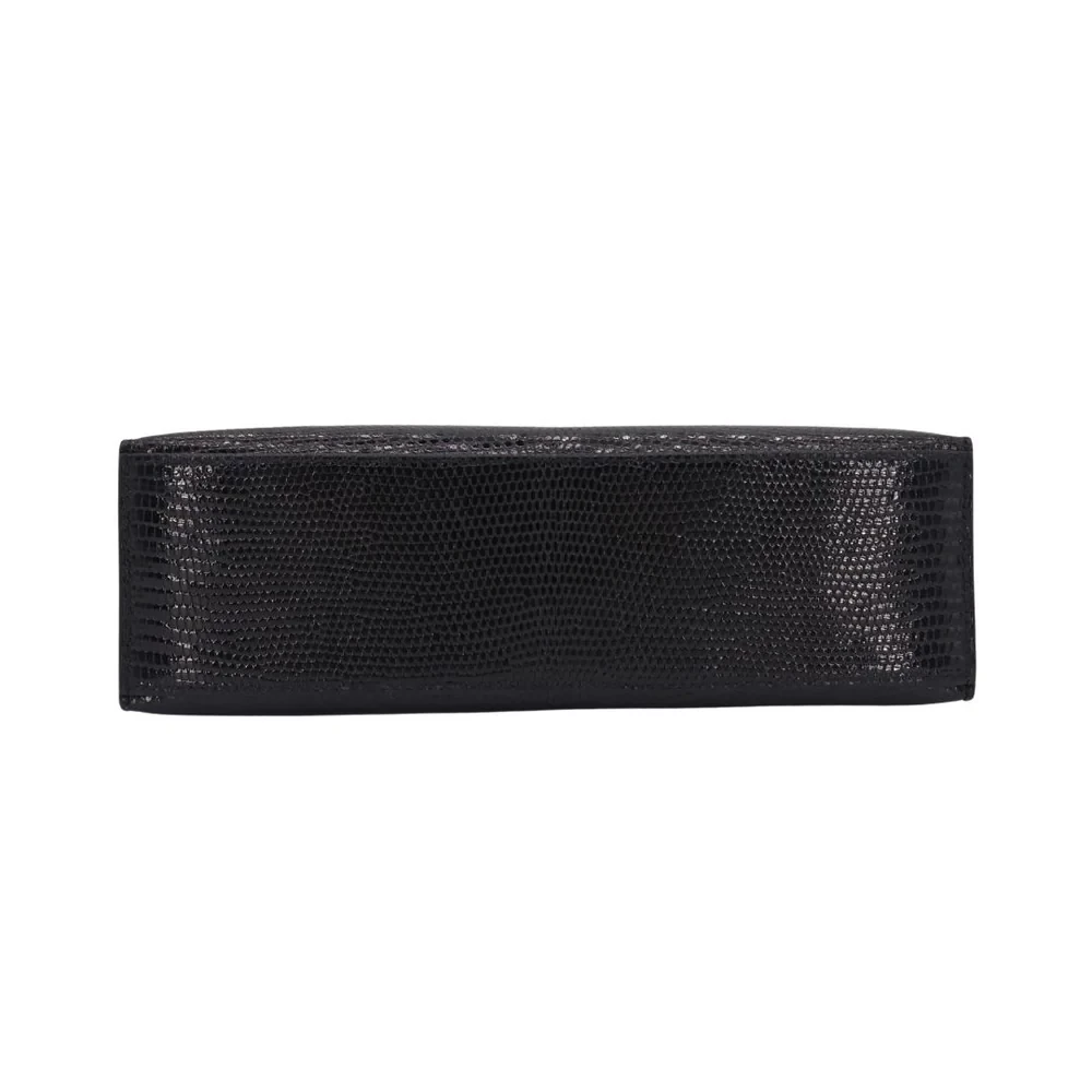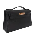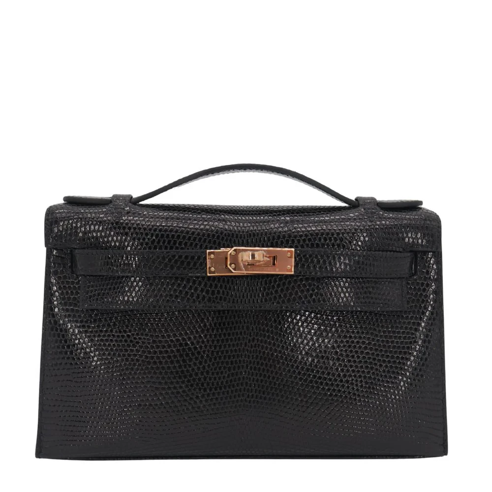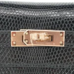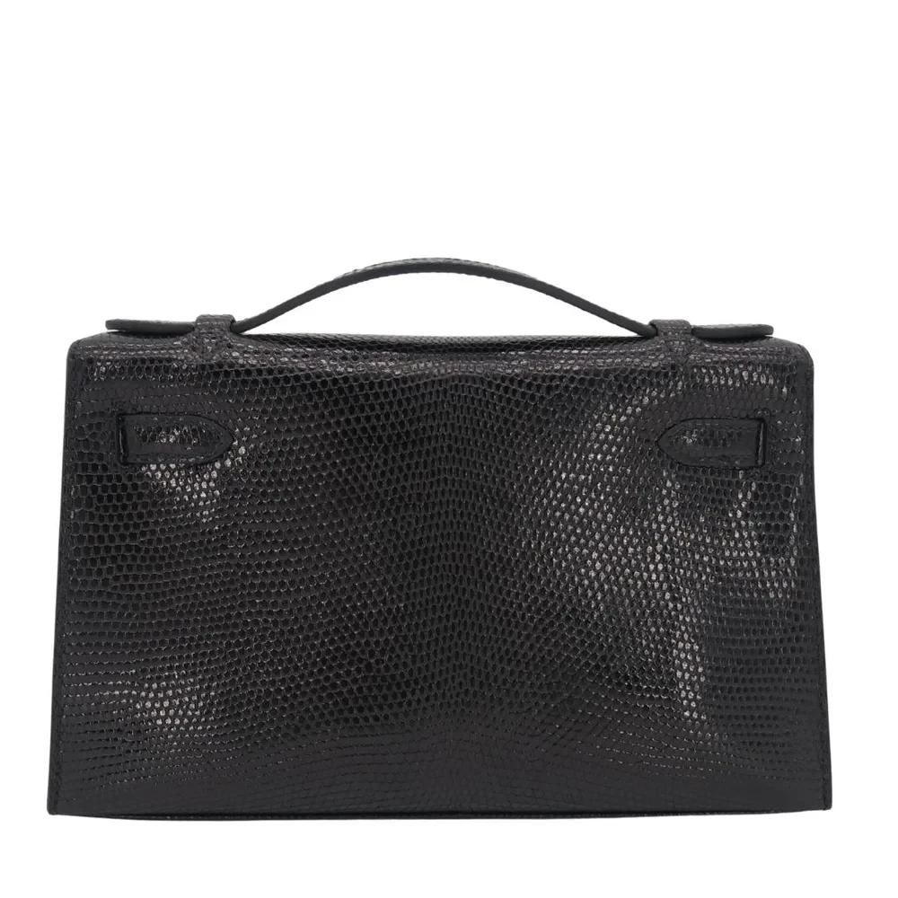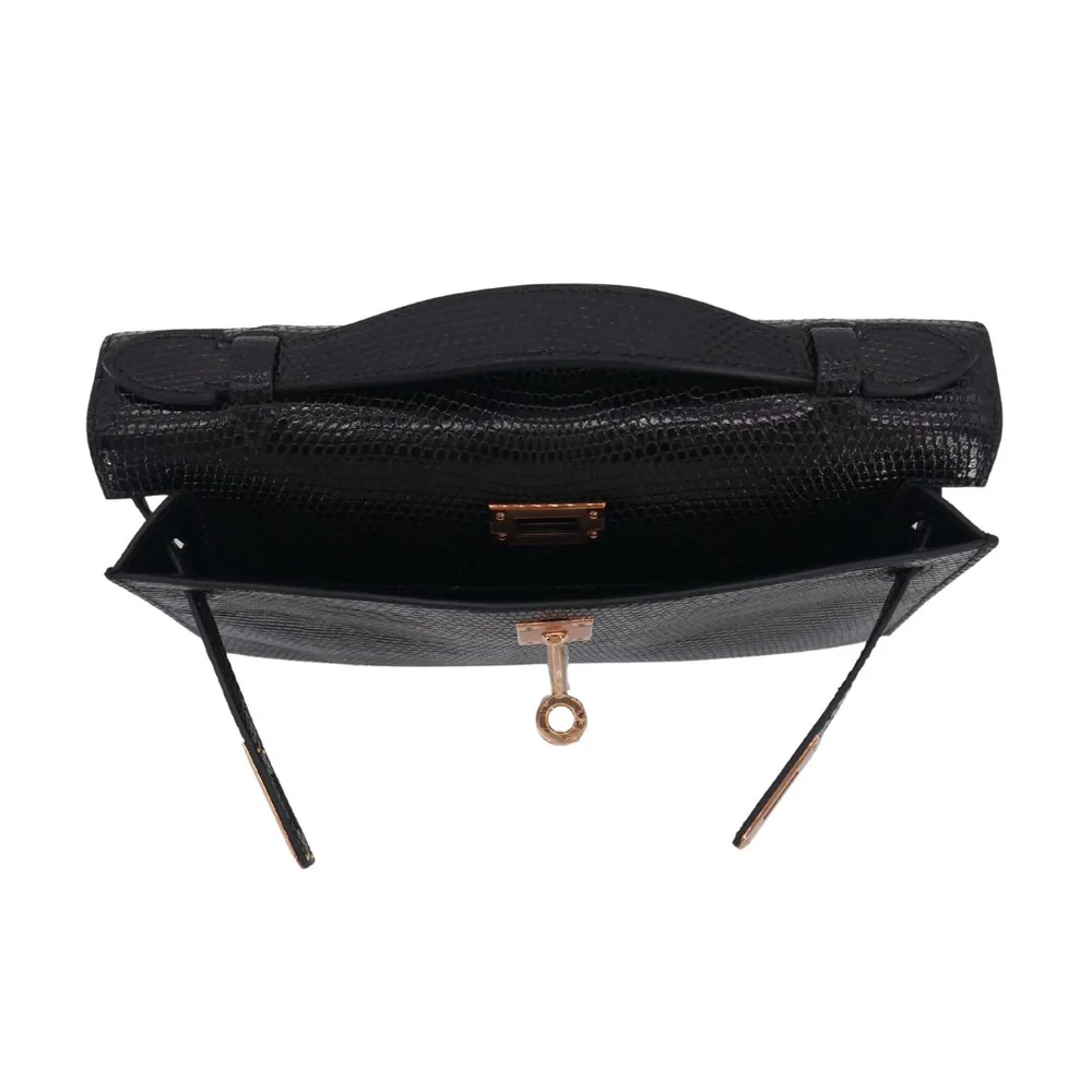 High-End Hermès Inspired – Kelly Pochette Black Shiny Lizard Rough Gold HW