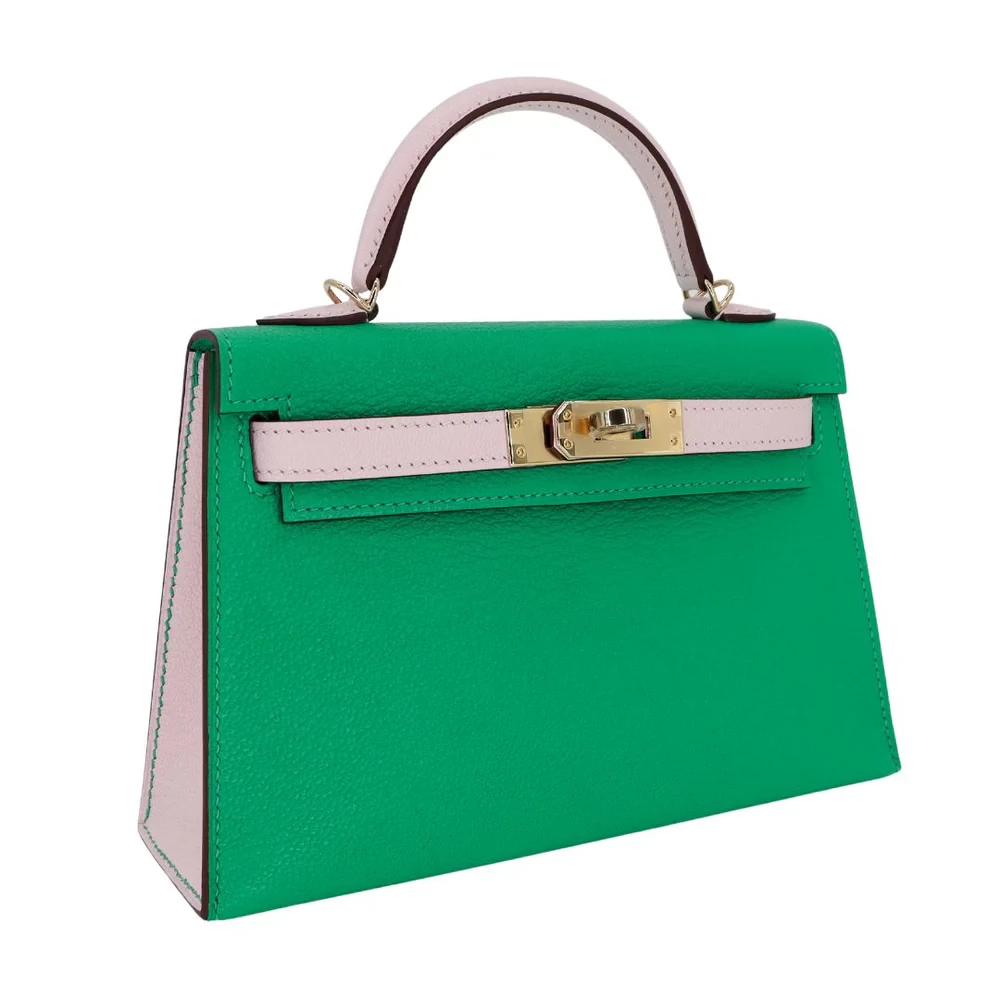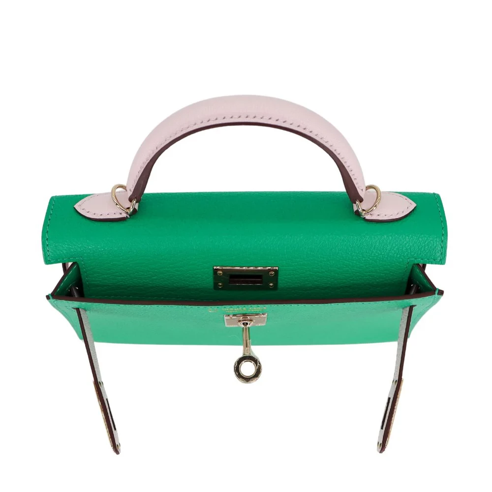 High-End Hermès Inspired – Kelly II Sellier Mini HSS Menthe/Mauve Pale Chevre Permabrass HW