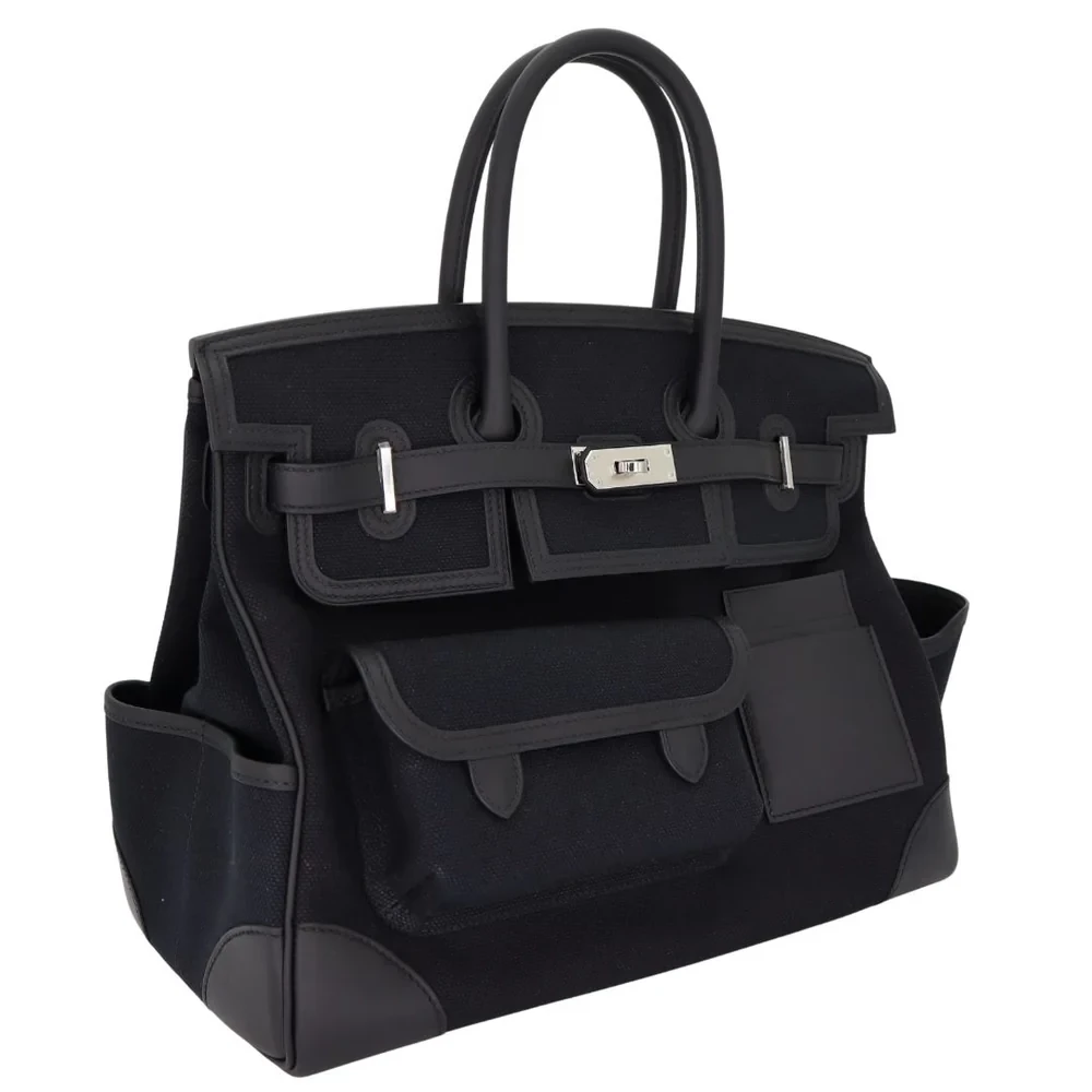 This Hermès Replica Birkin 35 features durable black canvas with Swift leather accents. Palladium hardware gives utilitarian chic appeal. The 35cm size fits everything for travel or work. Tough materials withstand daily wear effortlessly. Perfect with casual weekend outfits. Adventure ready luxury with urban edge. Function meets high fashion.