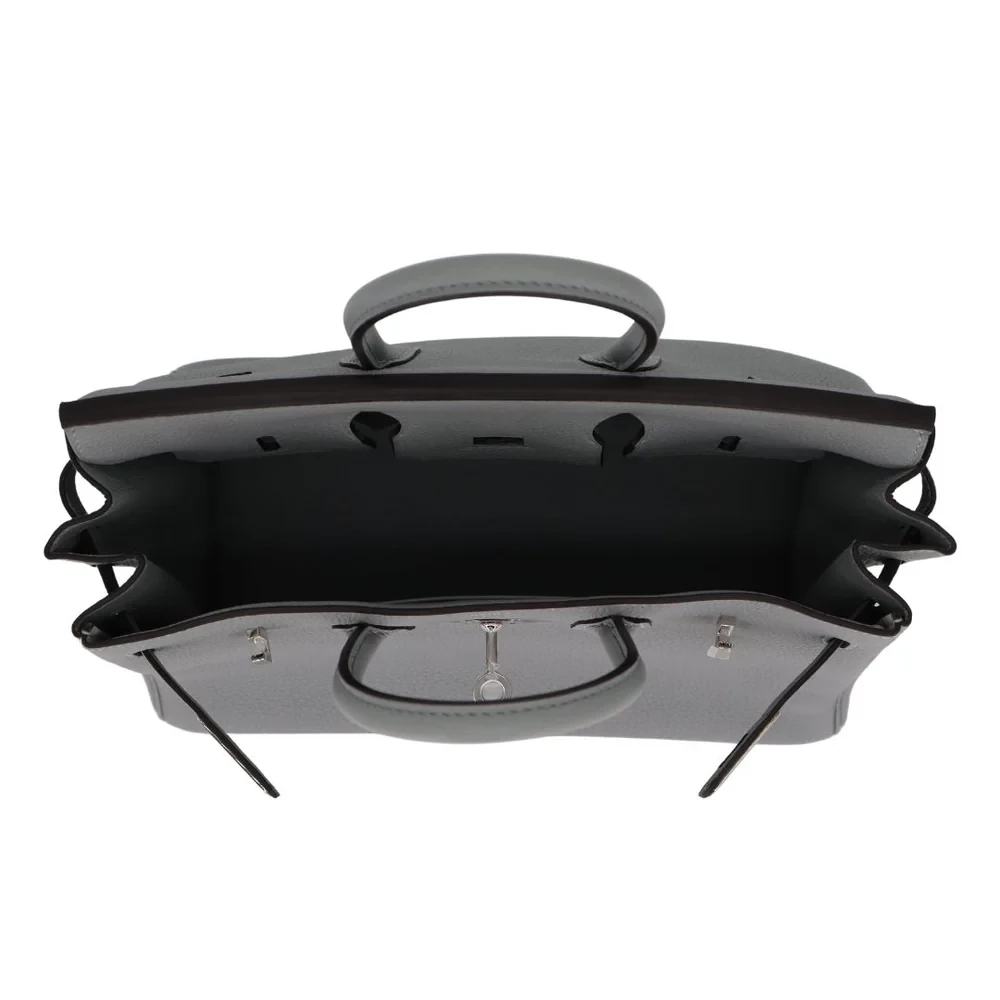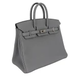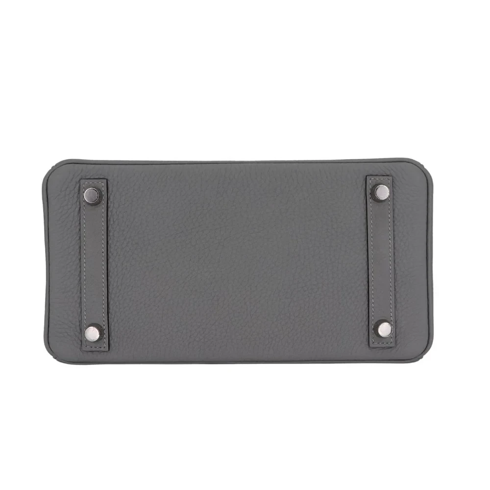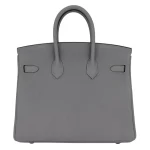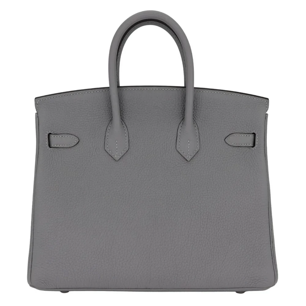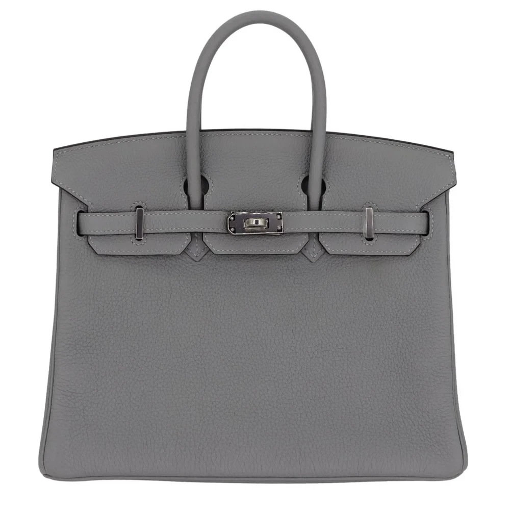 This Hermès style Birkin 25 features Bleu Lin Togo leather, a soft denim blue tone. Palladium hardware cools the 25cm design with modern edge. Soft Togo leather resists scratches and ages gracefully. Roomy enough for essentials like a phone and wallet. Pair with white or neutrals for casual elegance. Perfect for weekends or errands. Effortless everyday luxury.
