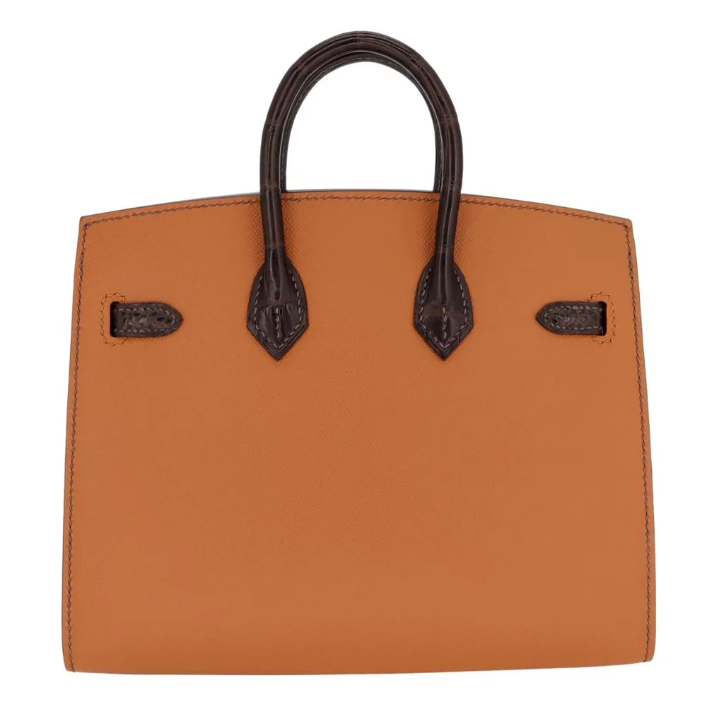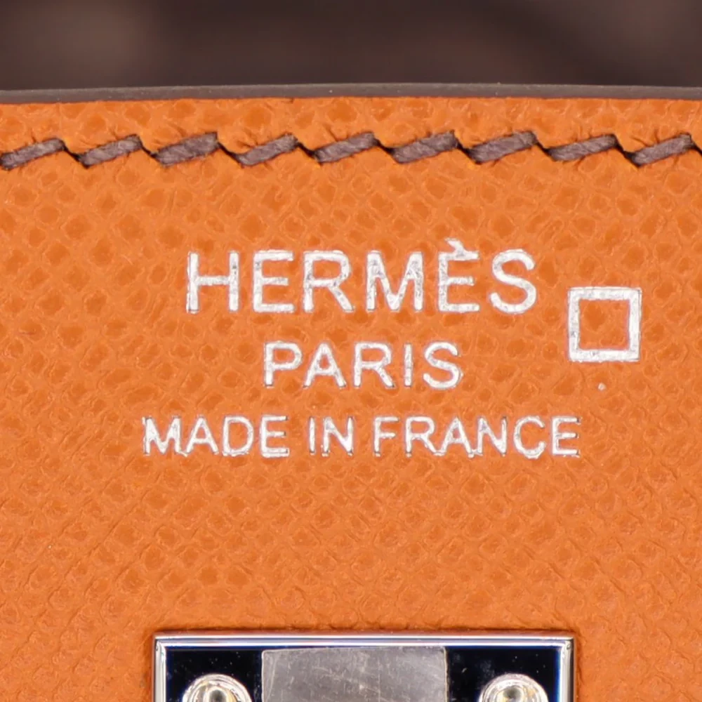 This Hermès style Birkin 20 Sellier features Faubourg House Day leather with tonal stitching. Palladium hardware adds sleek contrast to the 20cm design. Compact yet fits essentials like keys and cards. Scratch resistant leather stays polished. Pair with neutrals for minimalist chic. Perfect for urban explorers. Quiet Parisian elegance.