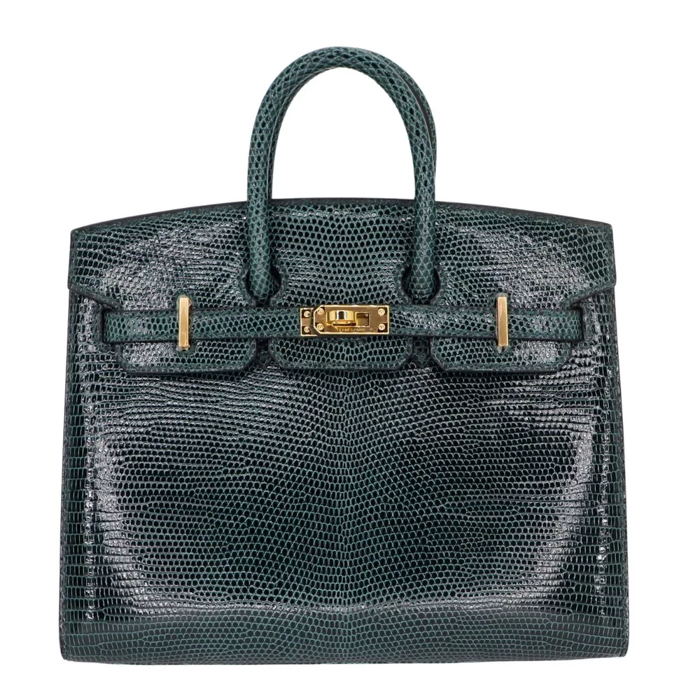 Premium Hermès Replica – Birkin 20 Sellier Vert Cypress Shiny Lizard Gold HW