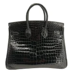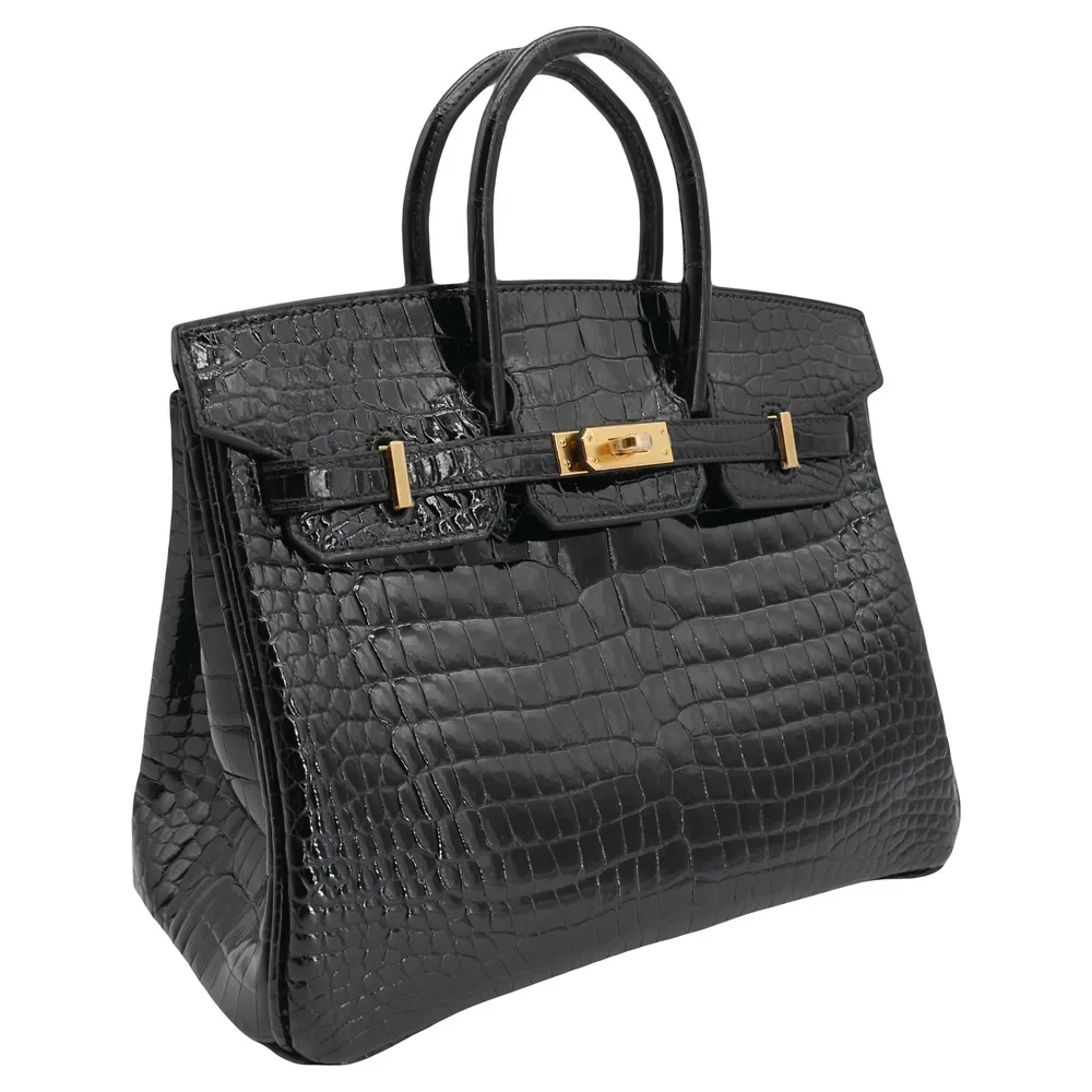 Premium Hermès Replica – Birkin 25 Black Shiny Porosus Crocodile Gold HW