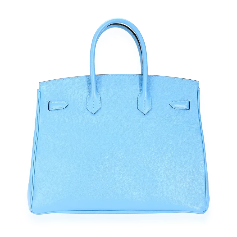 This Hermès Replica Birkin 35 features Bleu Paradis Epsom leather. Gold hardware adds warmth. The 35cm size fits files easily. Durable leather stays beautiful. Brightens work outfits. Your perfect professional companion. Airy luxury for the office.