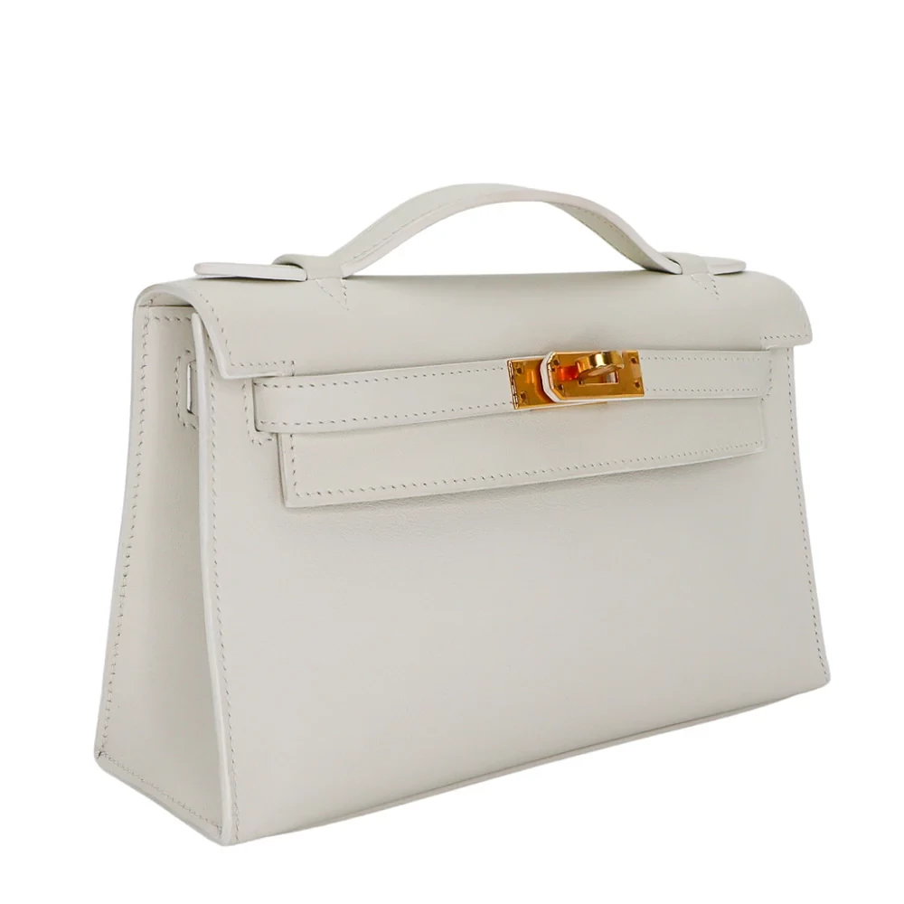 Premium Hermès Replica – Kelly Pochette Blanc (White) Swift Gold HW