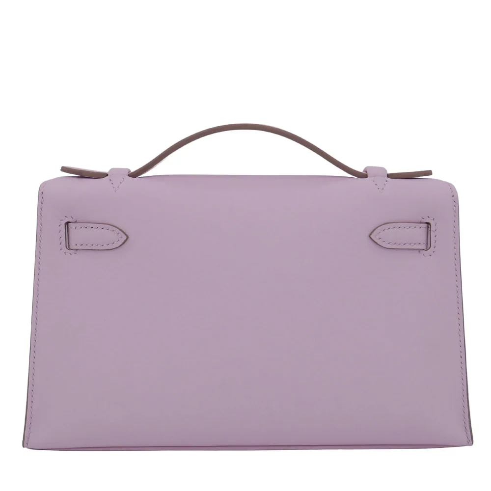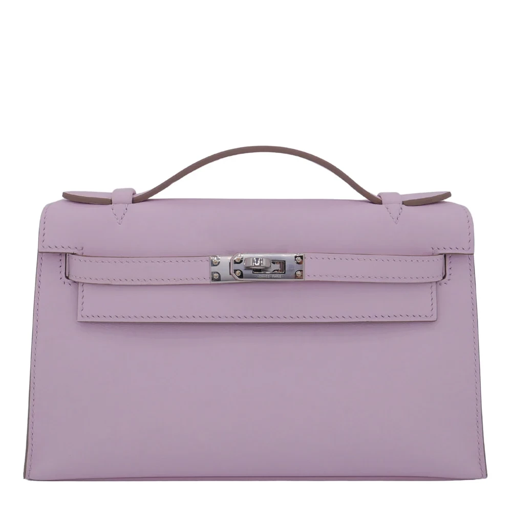 Premium Hermès Replica – Kelly Pochette Mauve Pale Swift Palladium HW