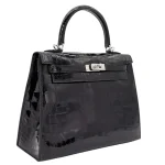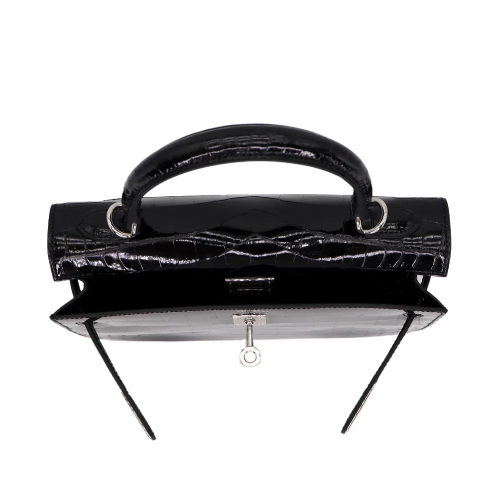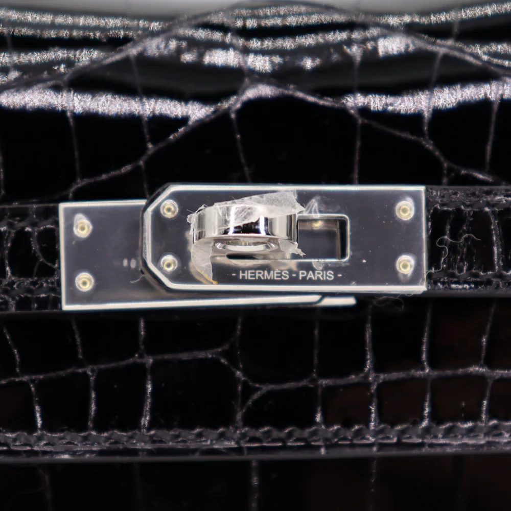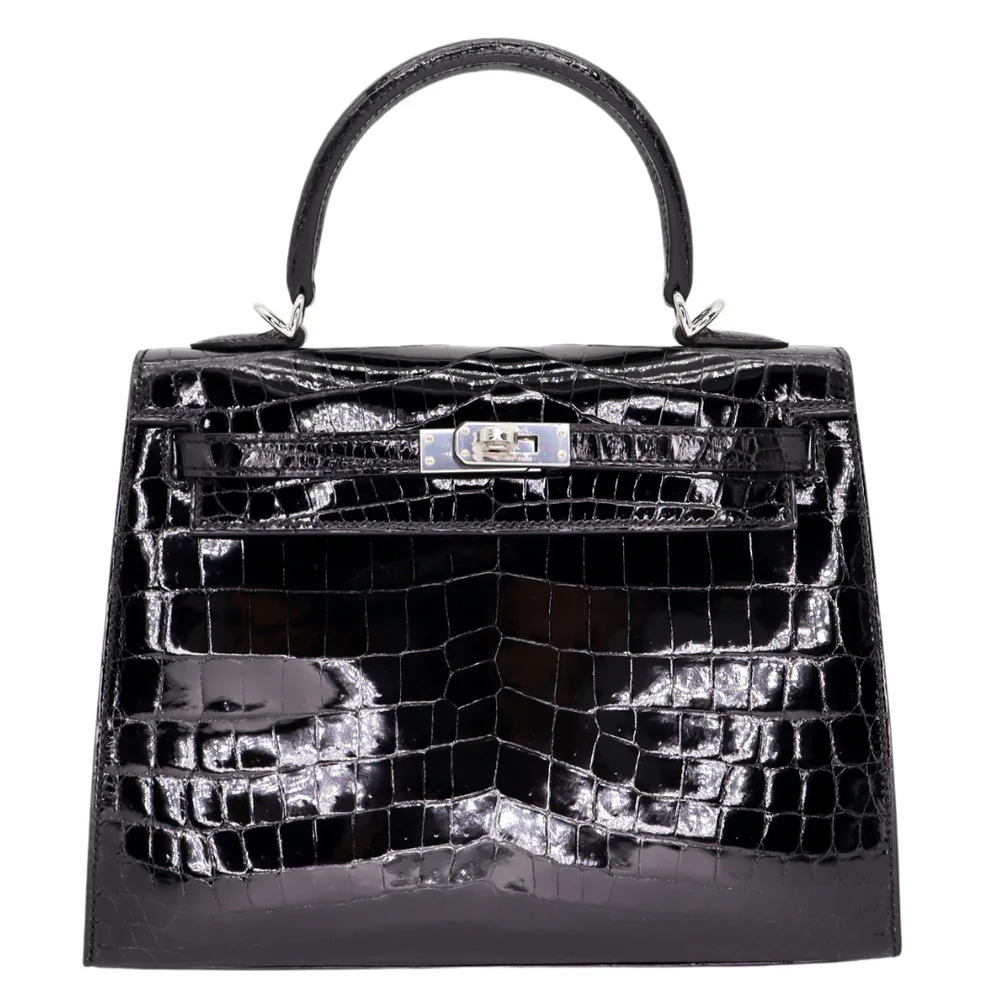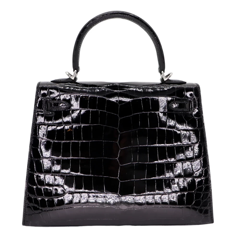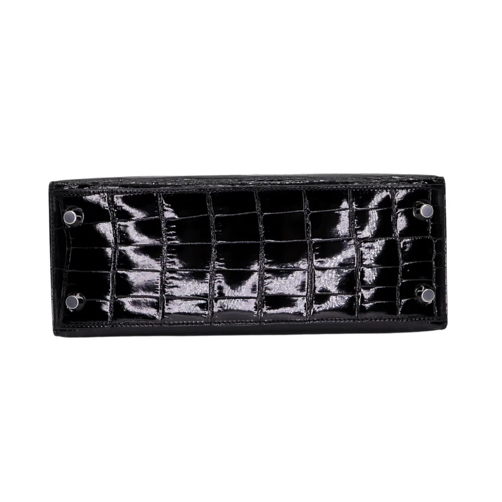 Premium Hermès Replica – Kelly 25 Sellier Black Shiny Niloticus Crocodile Palladium HW