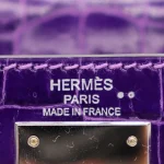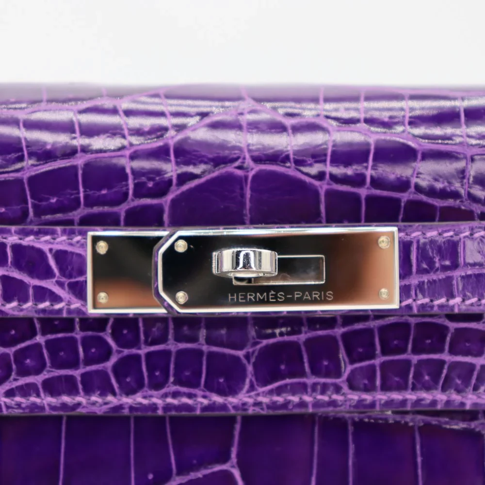 Premium Hermès Replica – Kelly 28 Sellier Ultraviolet Shiny Niloticus Crocodile Palladium HW